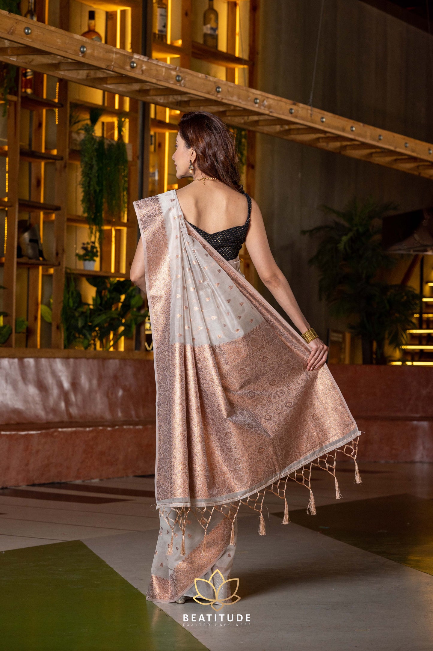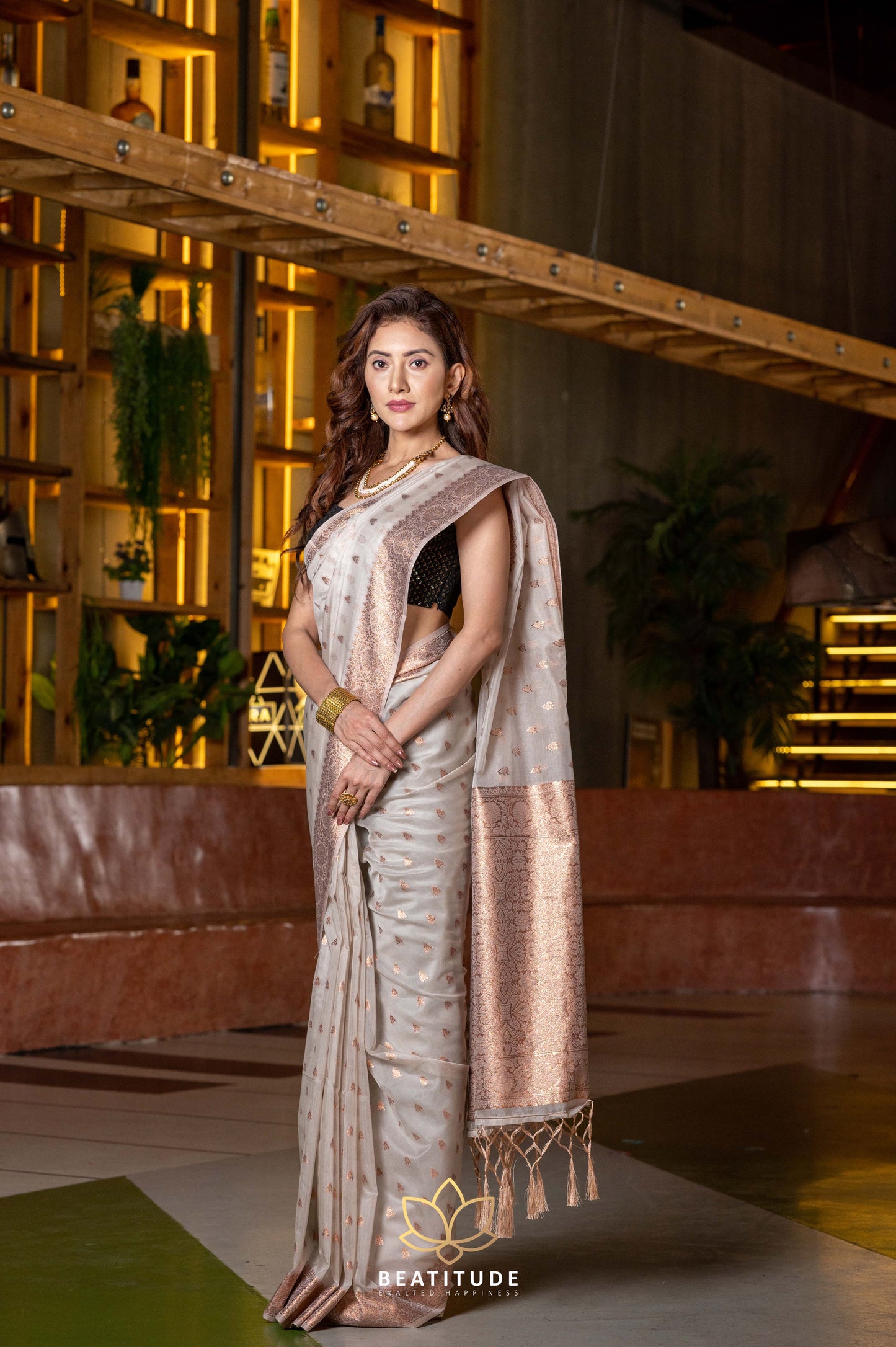 Grey Mukaish Zari Weaving Chanderi Cotton Saree