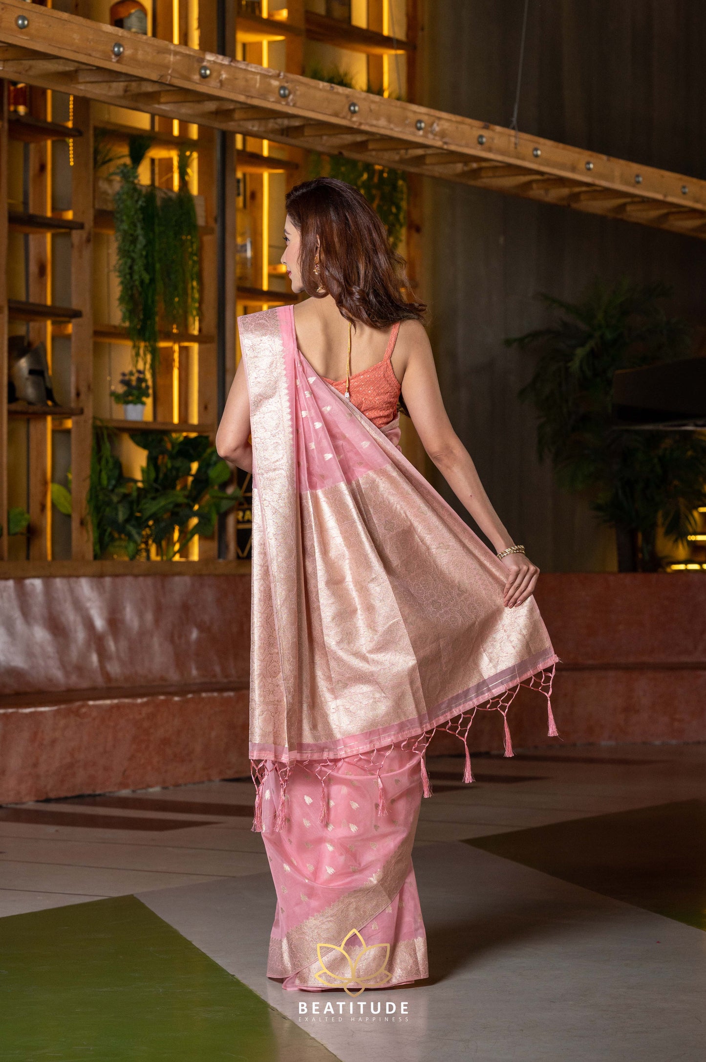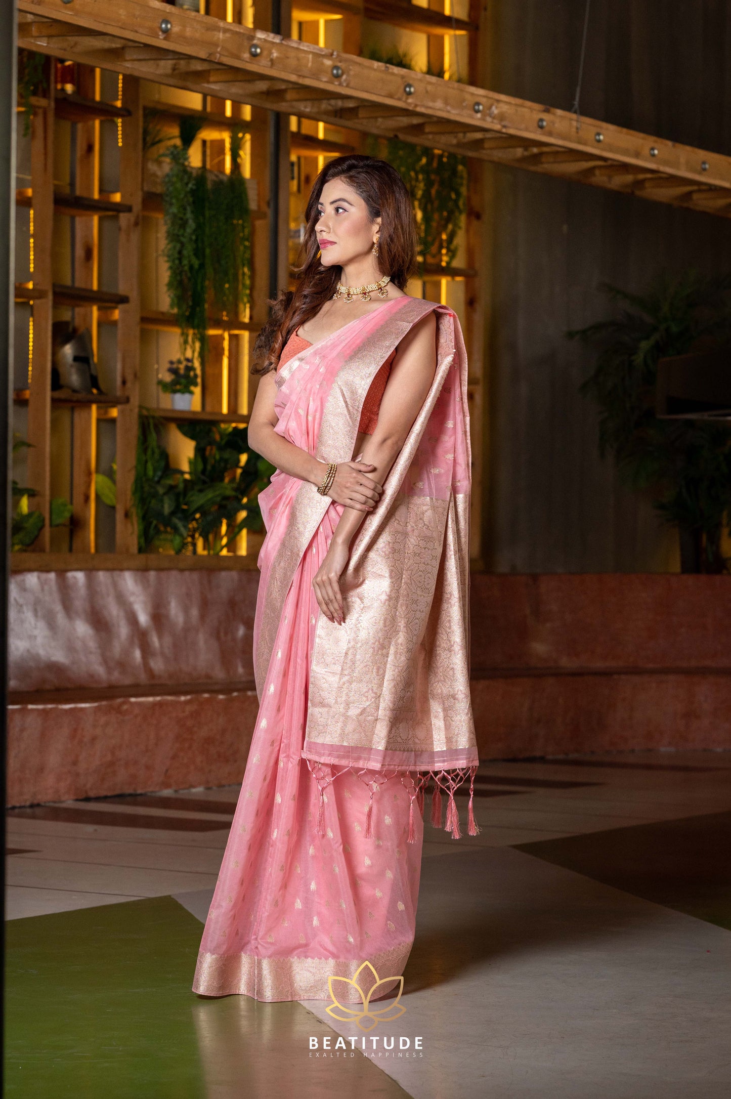 Pink Mukaish Zari Weaving Chanderi Cotton Saree