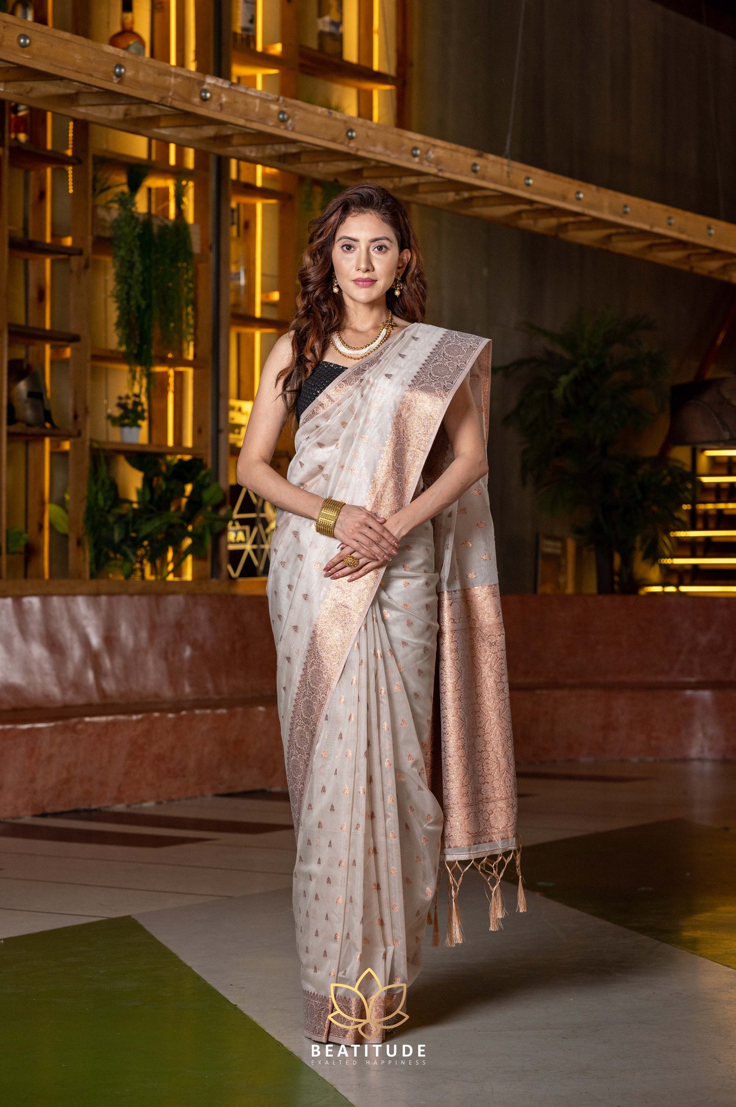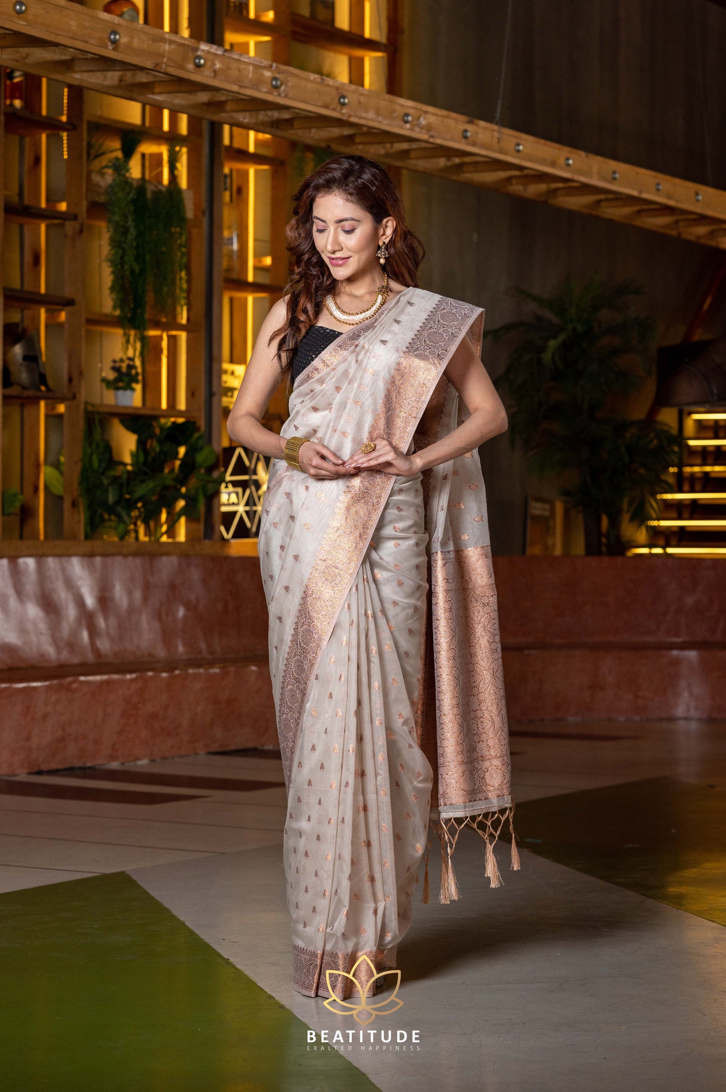 Add Black Zari Border Handloom Linen Saree to the cart