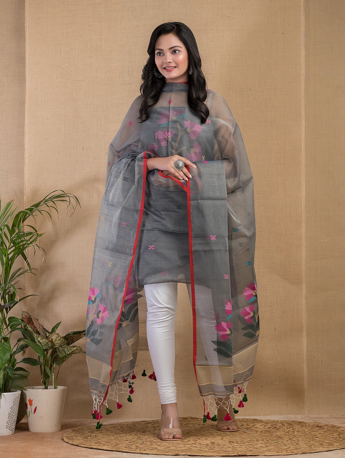Add Grey Muslin Jamdani thok Ful Top Dupatta ( Un-Stitched ) to the cart