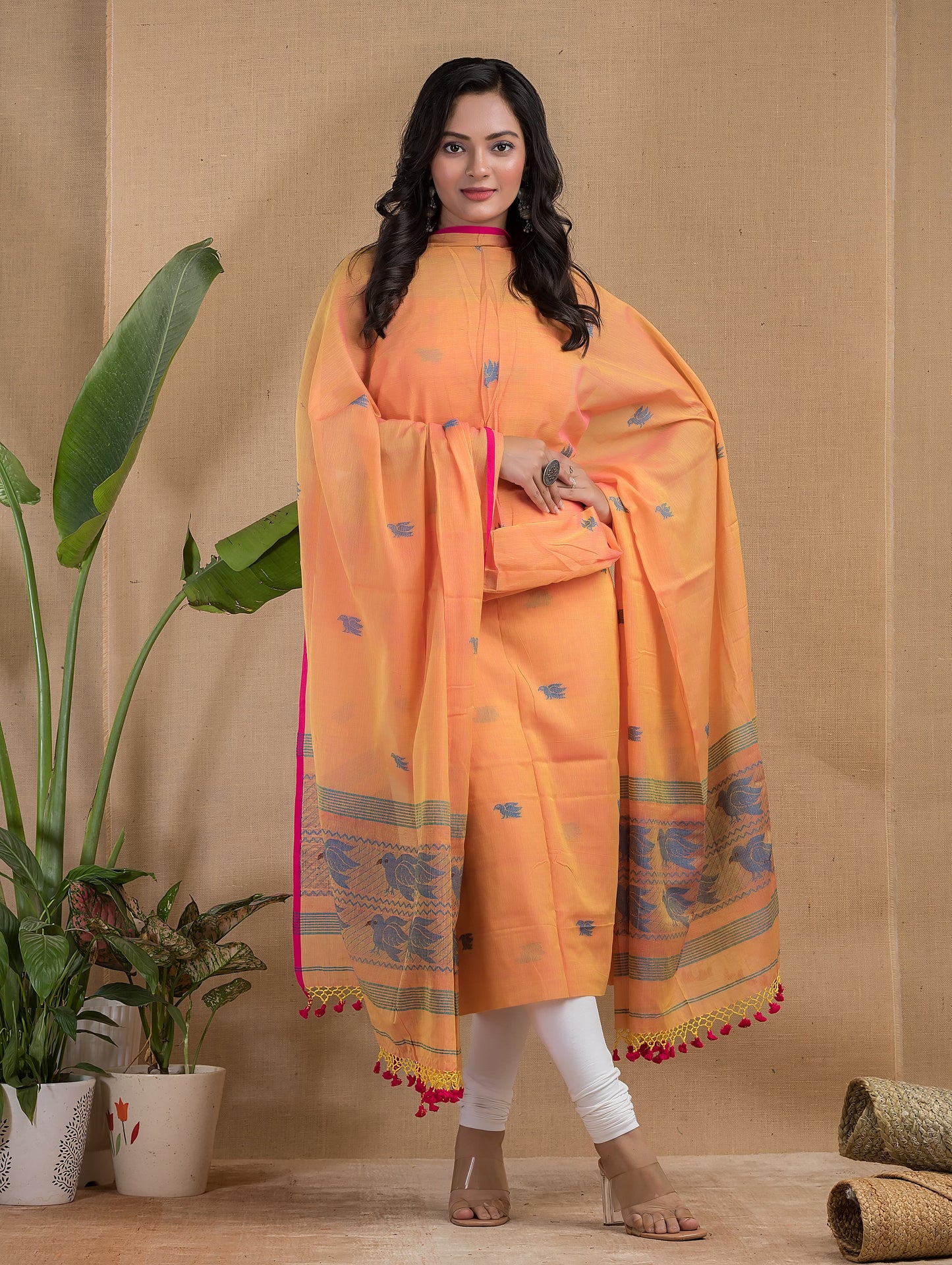 Add Orange Pure Cotton Bird Jamdani Top Dupatta ( Un-Stitched ) to the cart