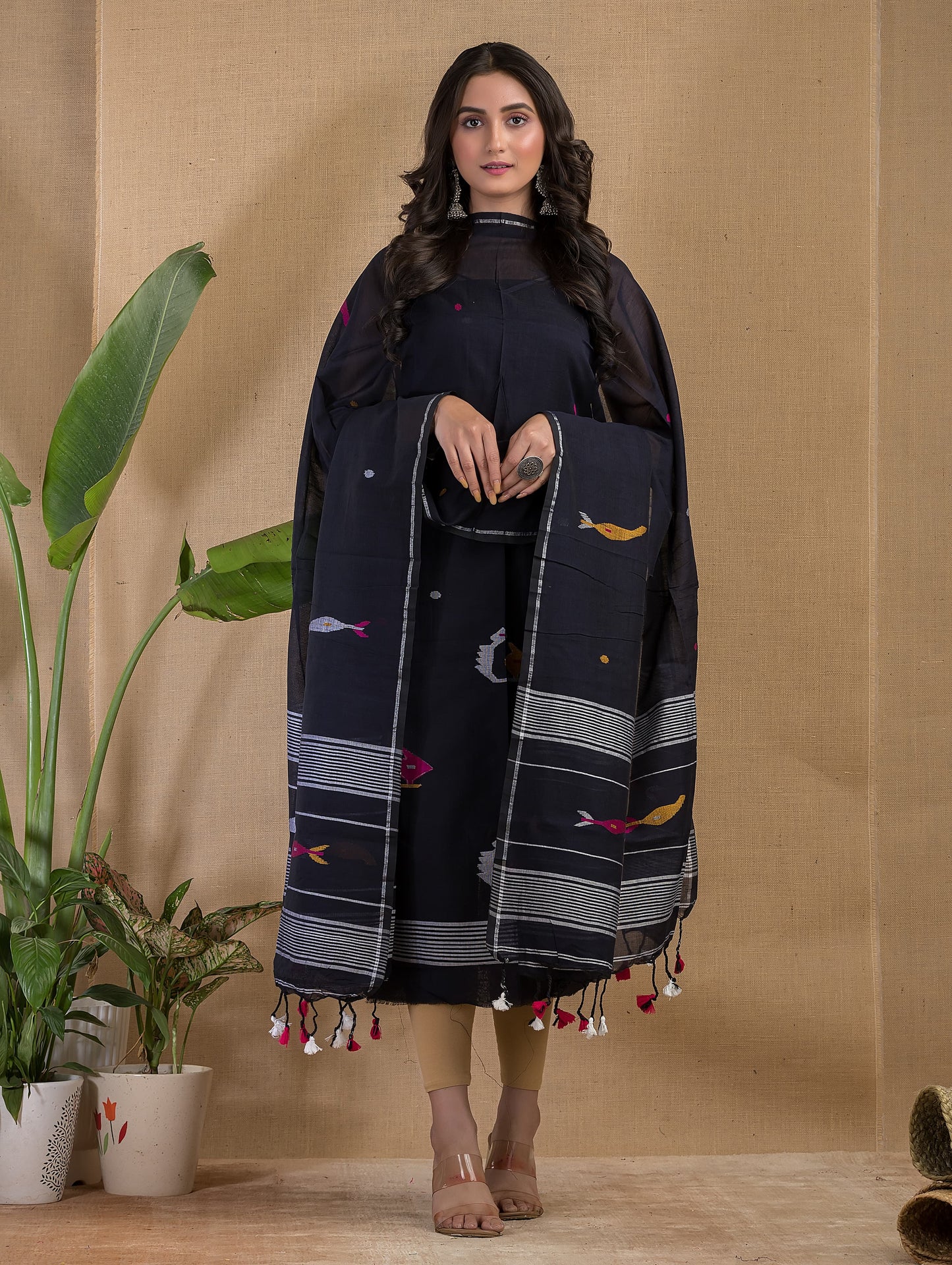 Add Black Tontuj Cotton Jamdani Top Dupatta( Un-Stitched ) to the cart