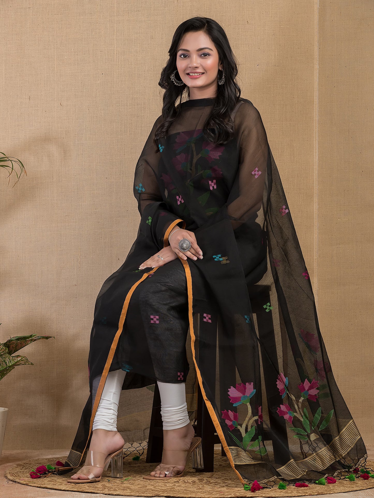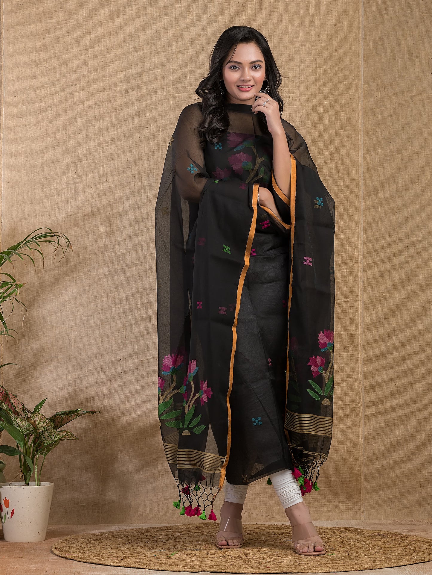 Add Black Muslin Jamdani thok Ful Top Dupatta ( Un-Stitched ) to the cart