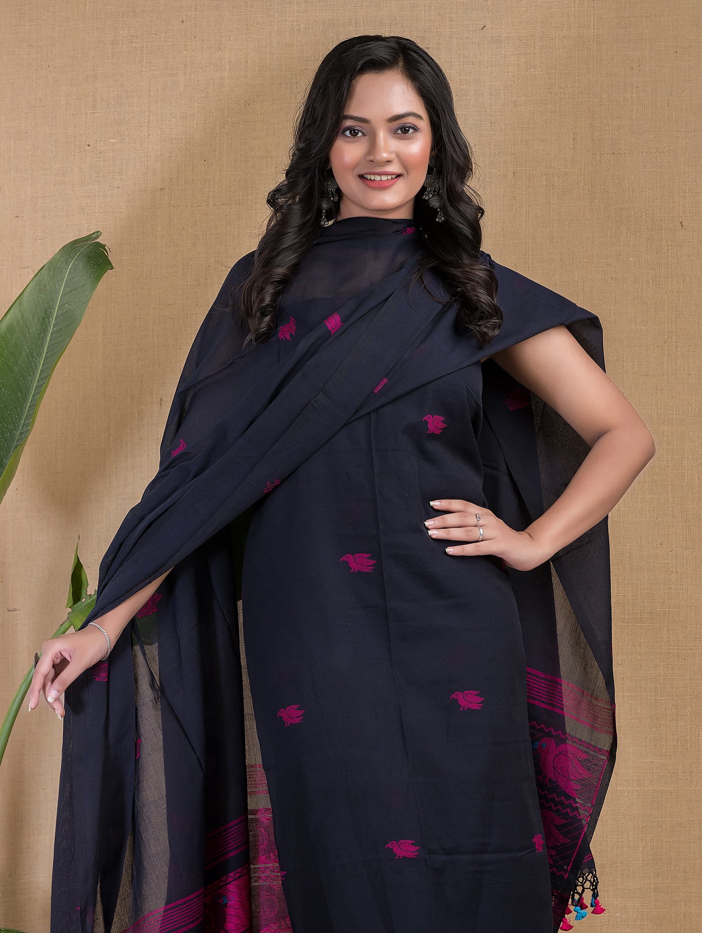 Add Black Pure Cotton Bird Jamdani Top Dupatta ( Un-Stitched ) to the cart