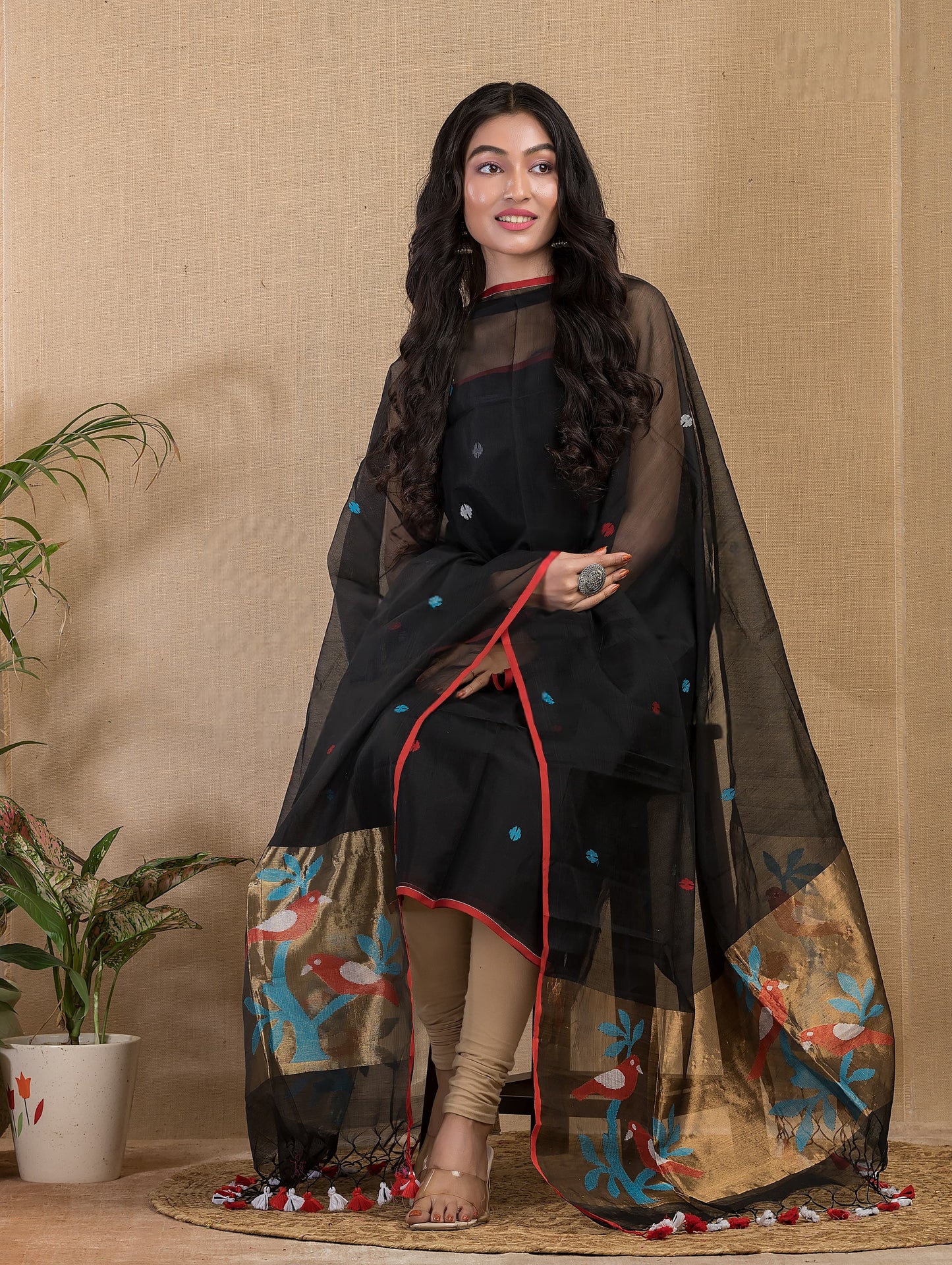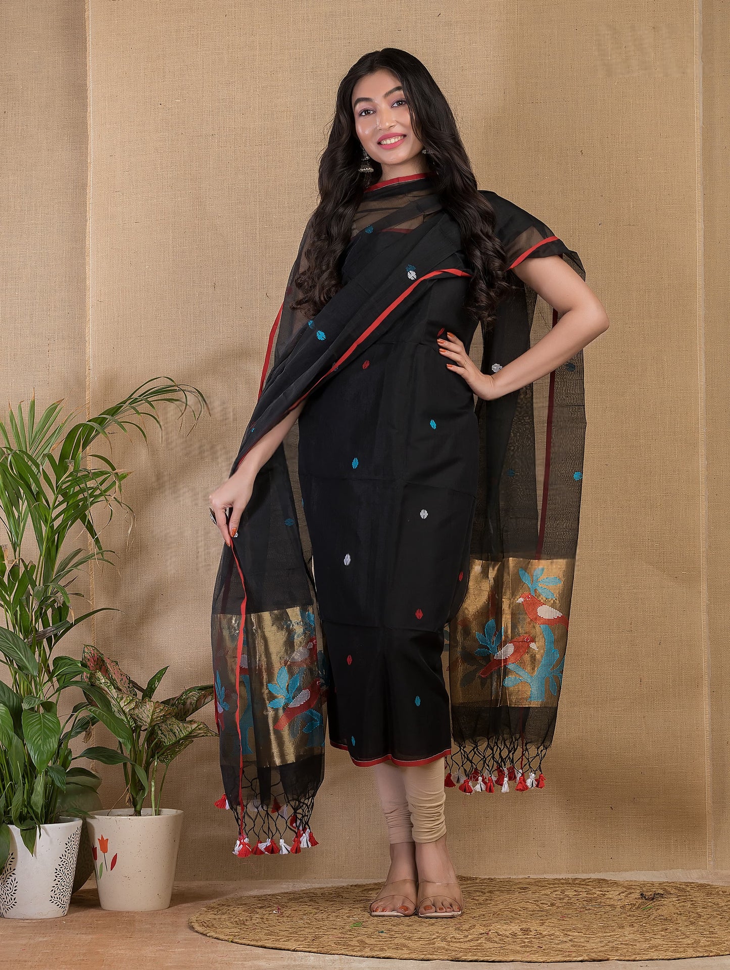 Add Black Muslin Jamdani Paithani Top Dupatta ( Un-Stitched ) to the cart