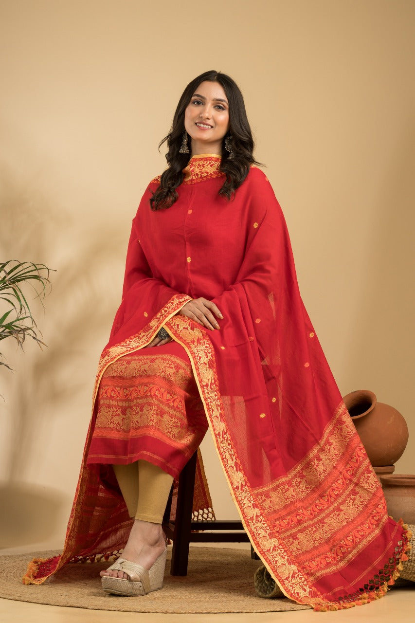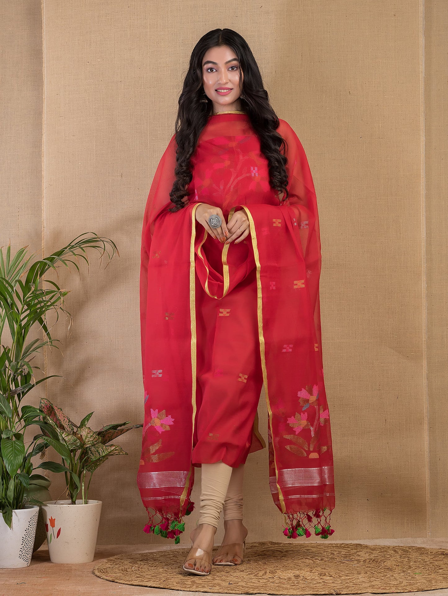 Add Red Muslin Jamdani thok Ful Top Dupatta ( Un-Stitched ) to the cart
