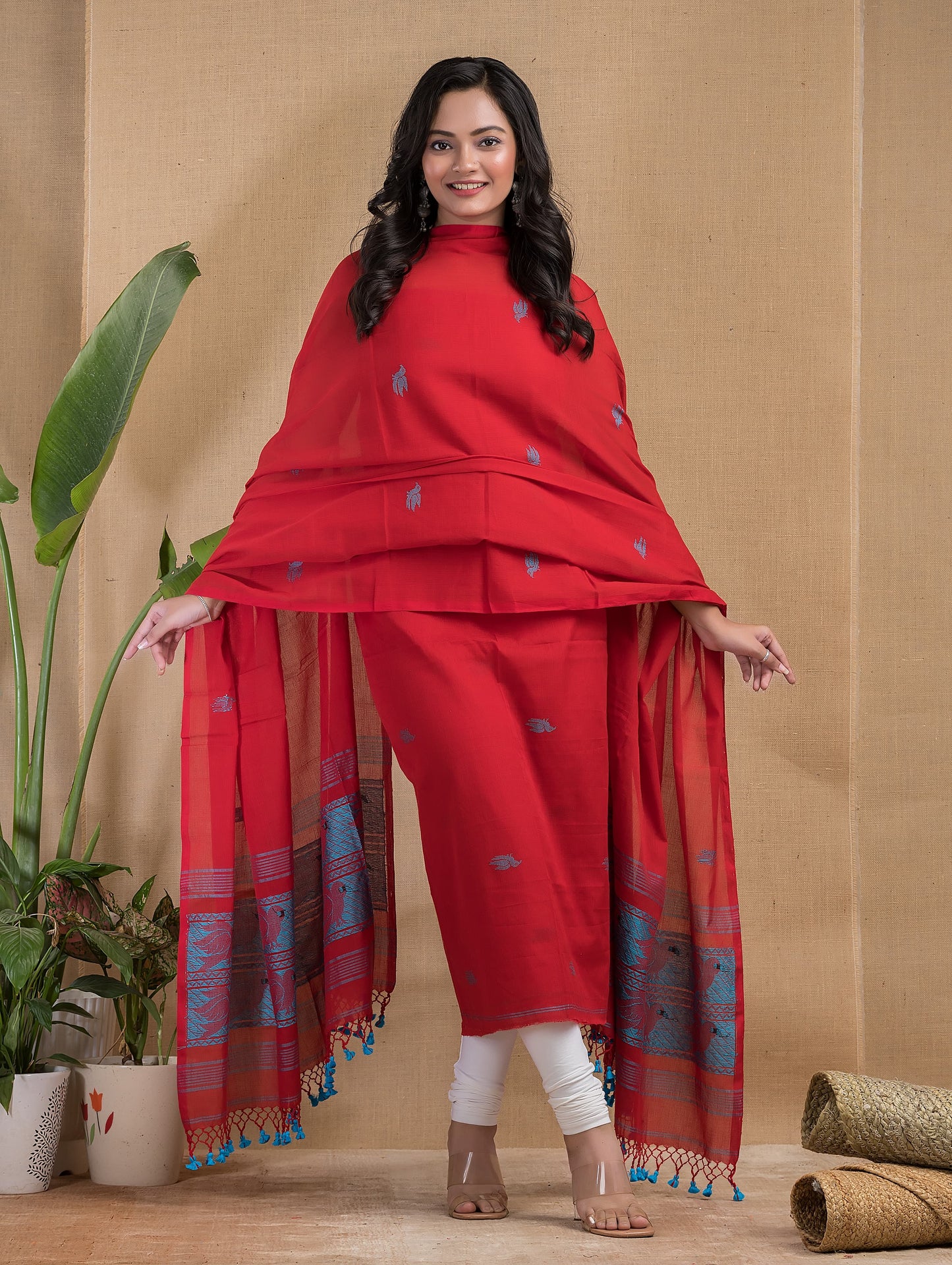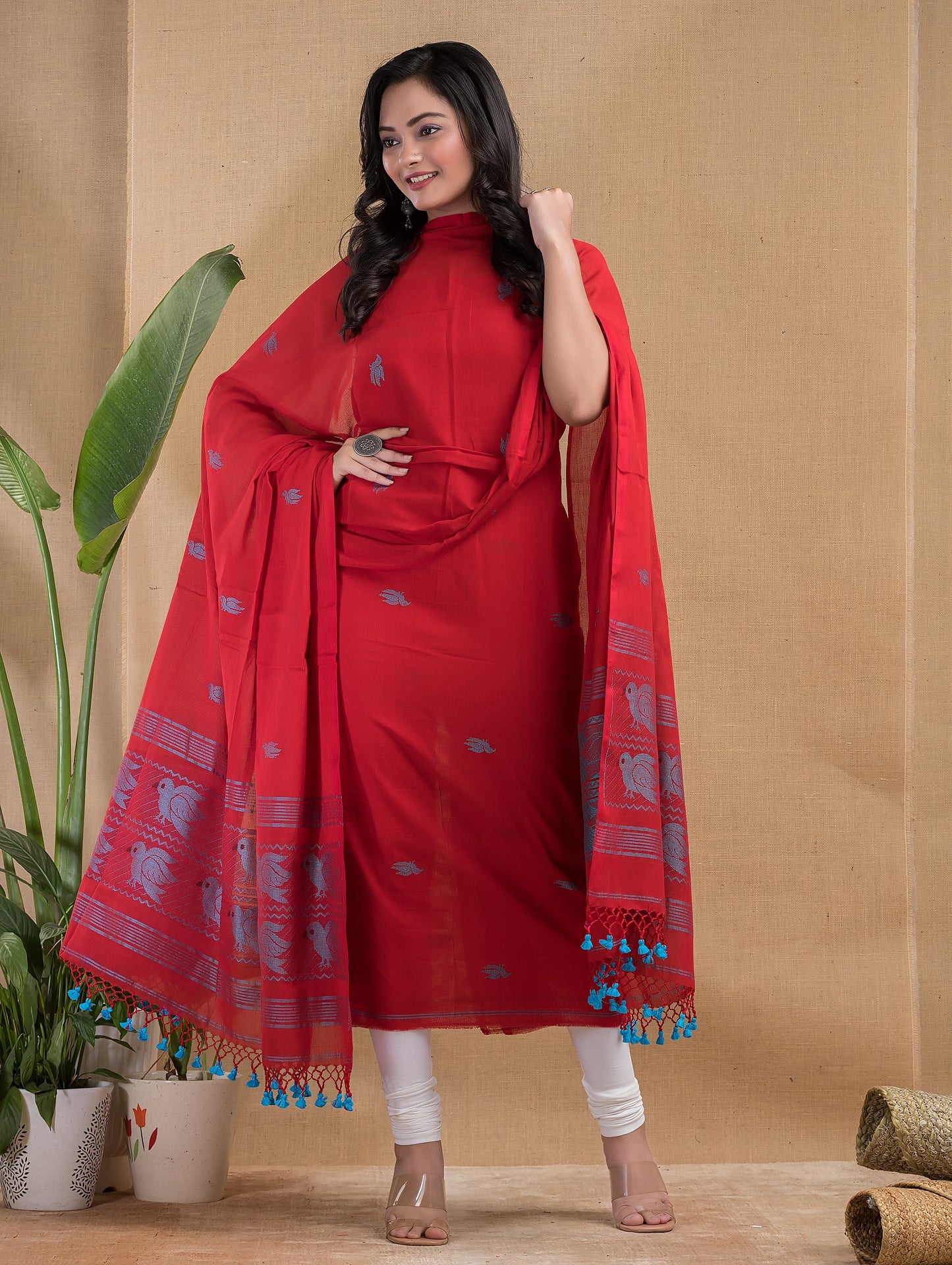 Add Red Pure Cotton Bird Jamdani Top Dupatta ( Un-Stitched ) to the cart