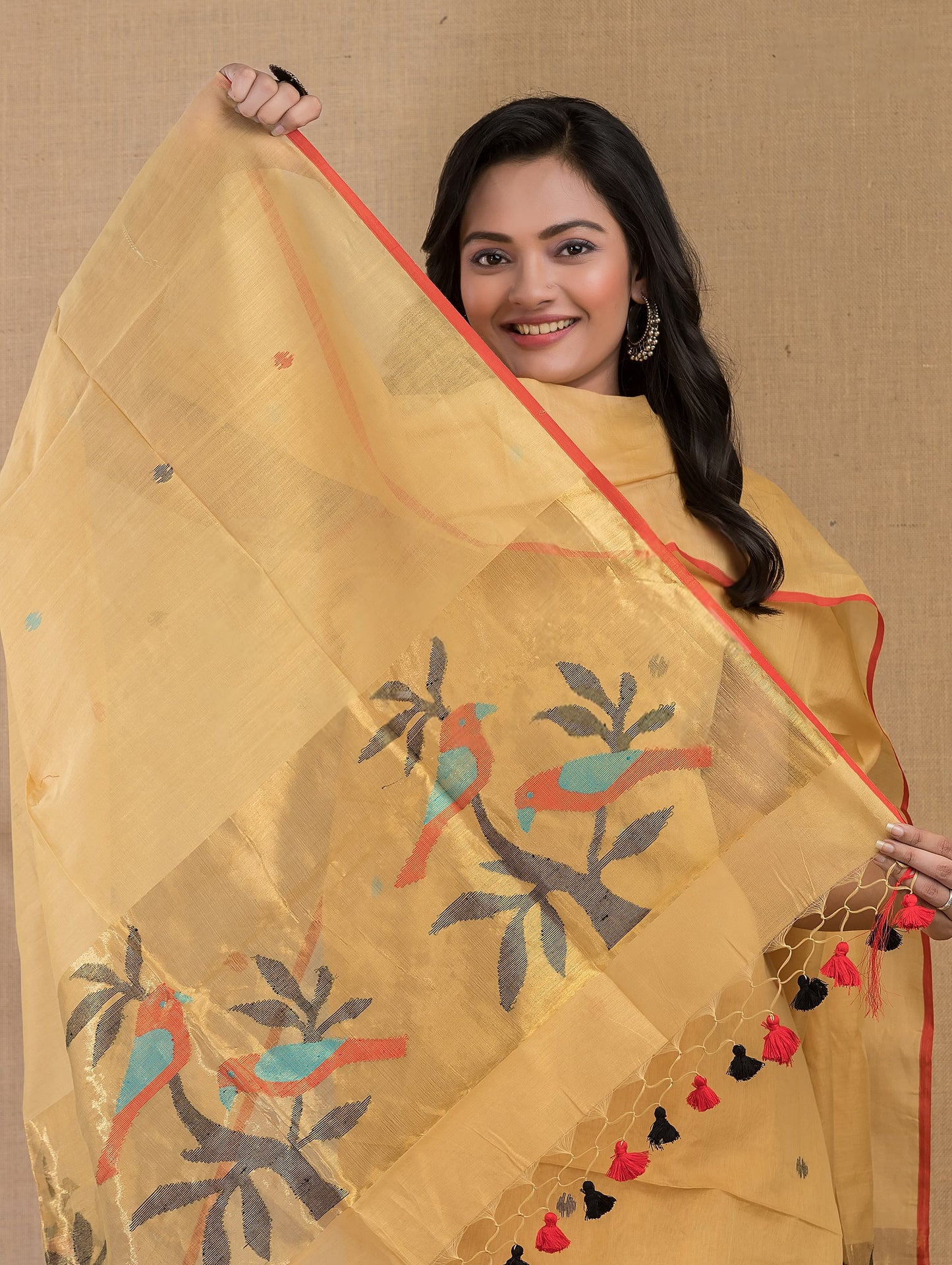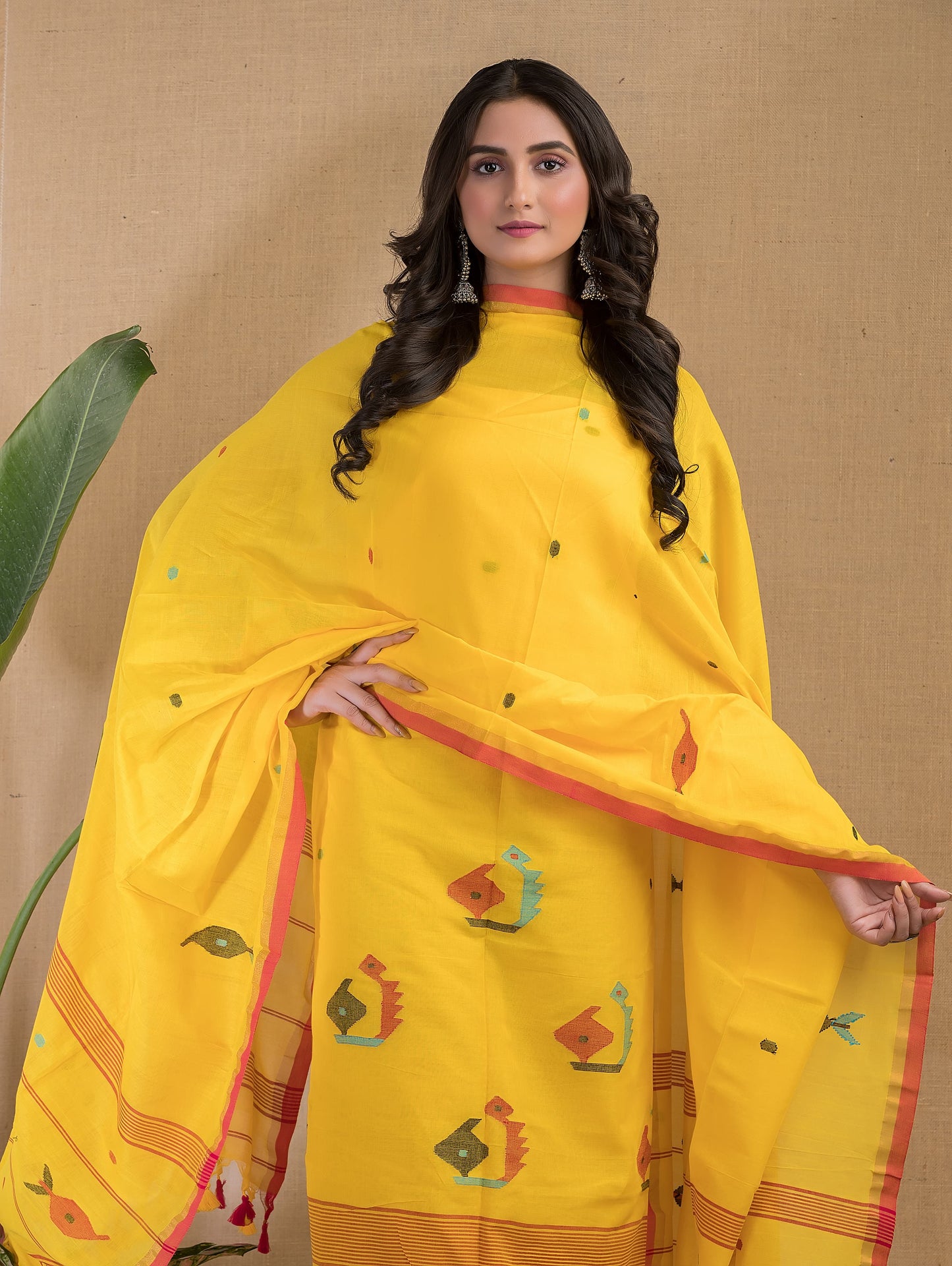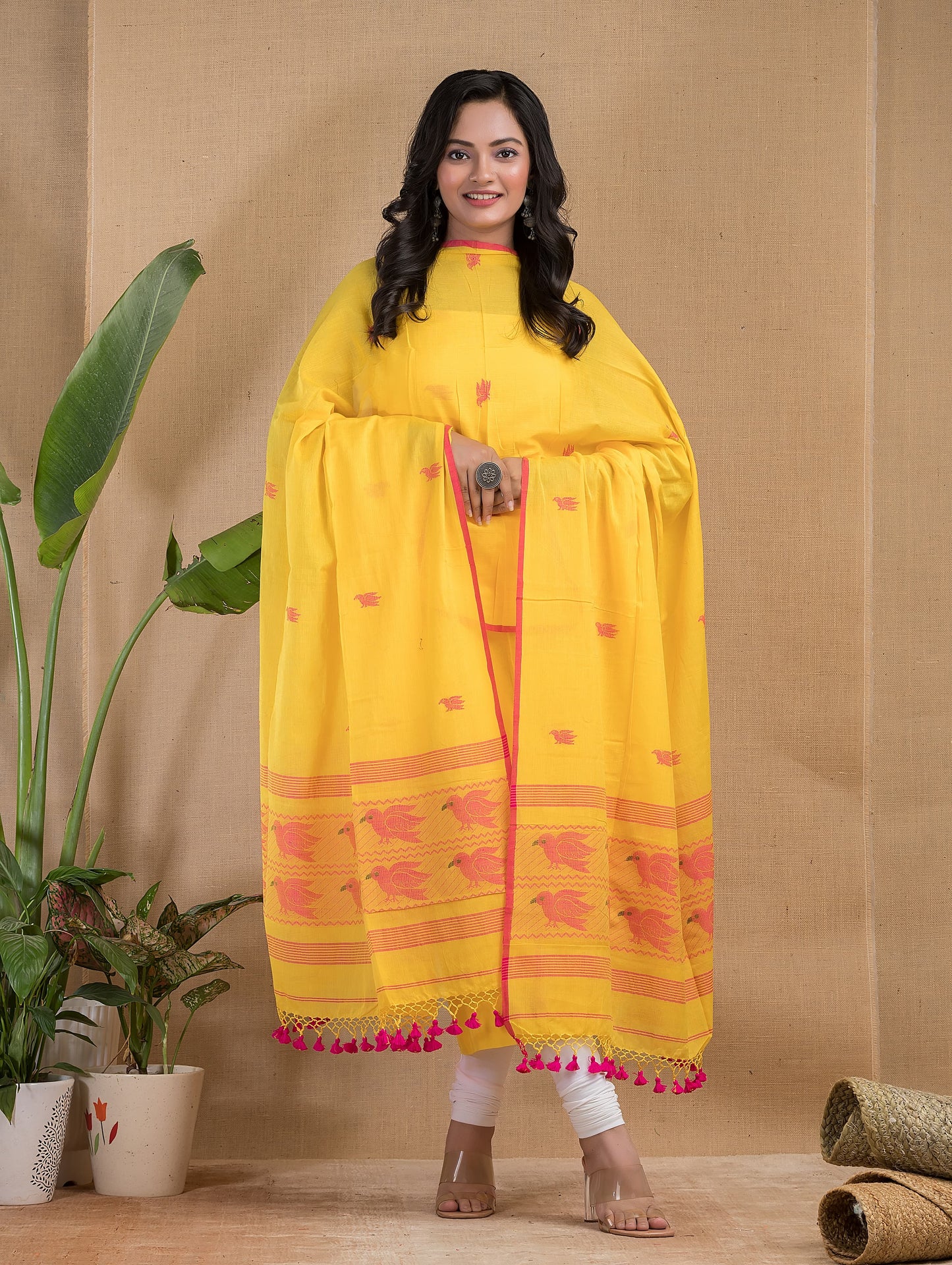 Add Yellow Pure Cotton Bird Jamdani Top Dupatta ( Un-Stitched ) to the cart