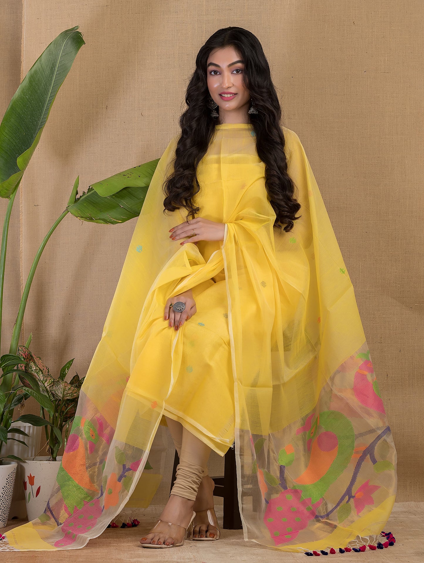 Add Yellow Muslin Jamdani Paithani Top Dupatta( Un-Stitched ) to the cart