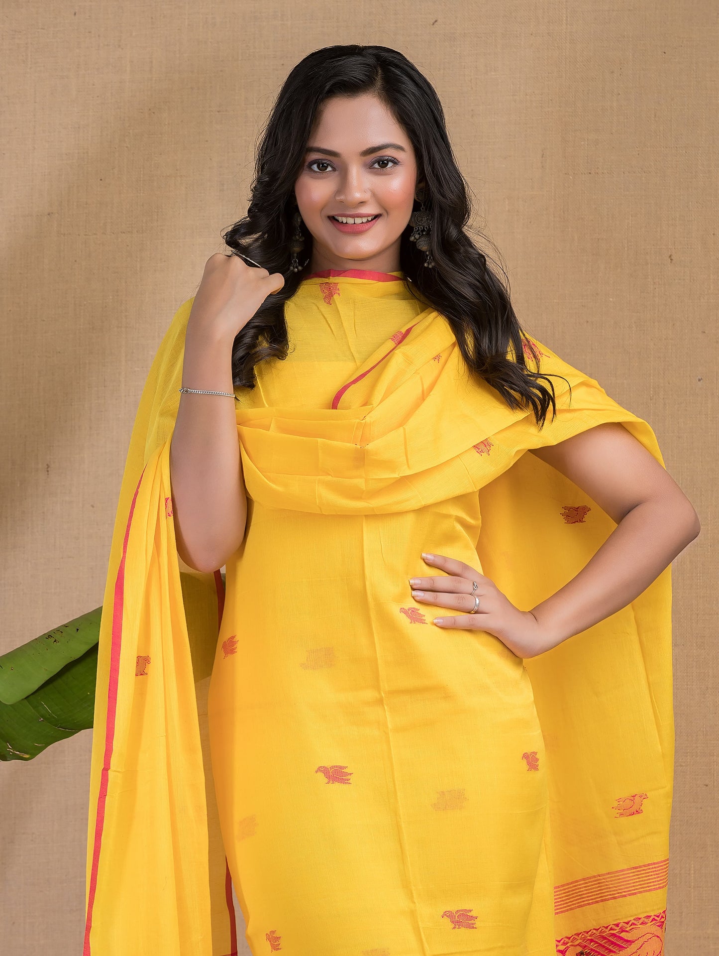 Add Yellow Cotton Jacqaurd Border Tangail Handloom Saree to the cart