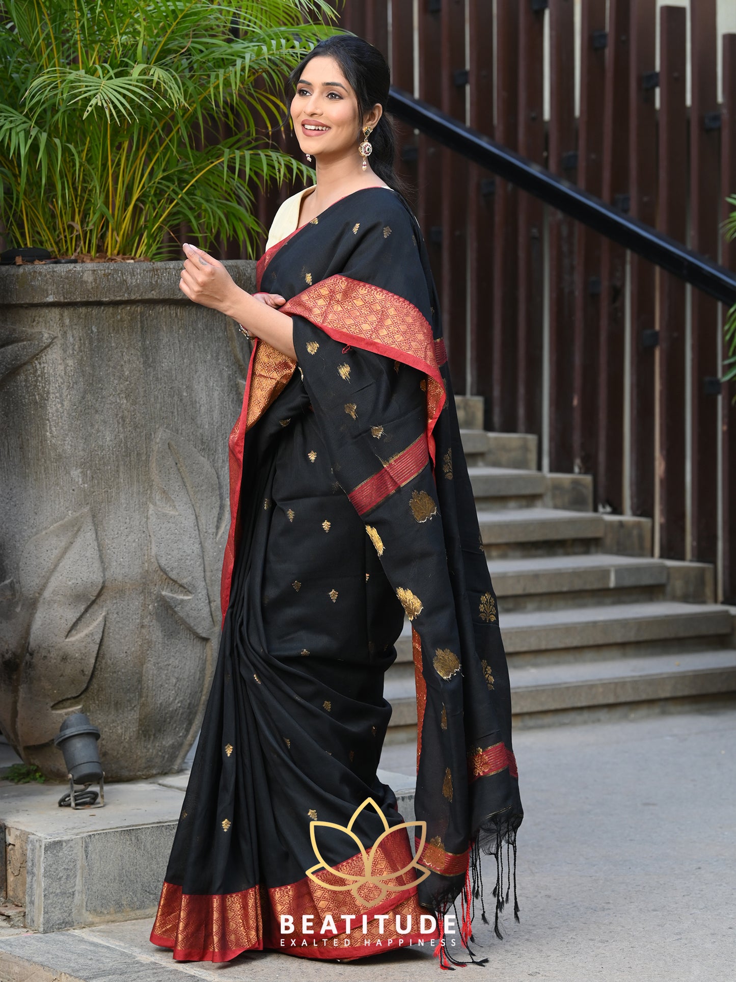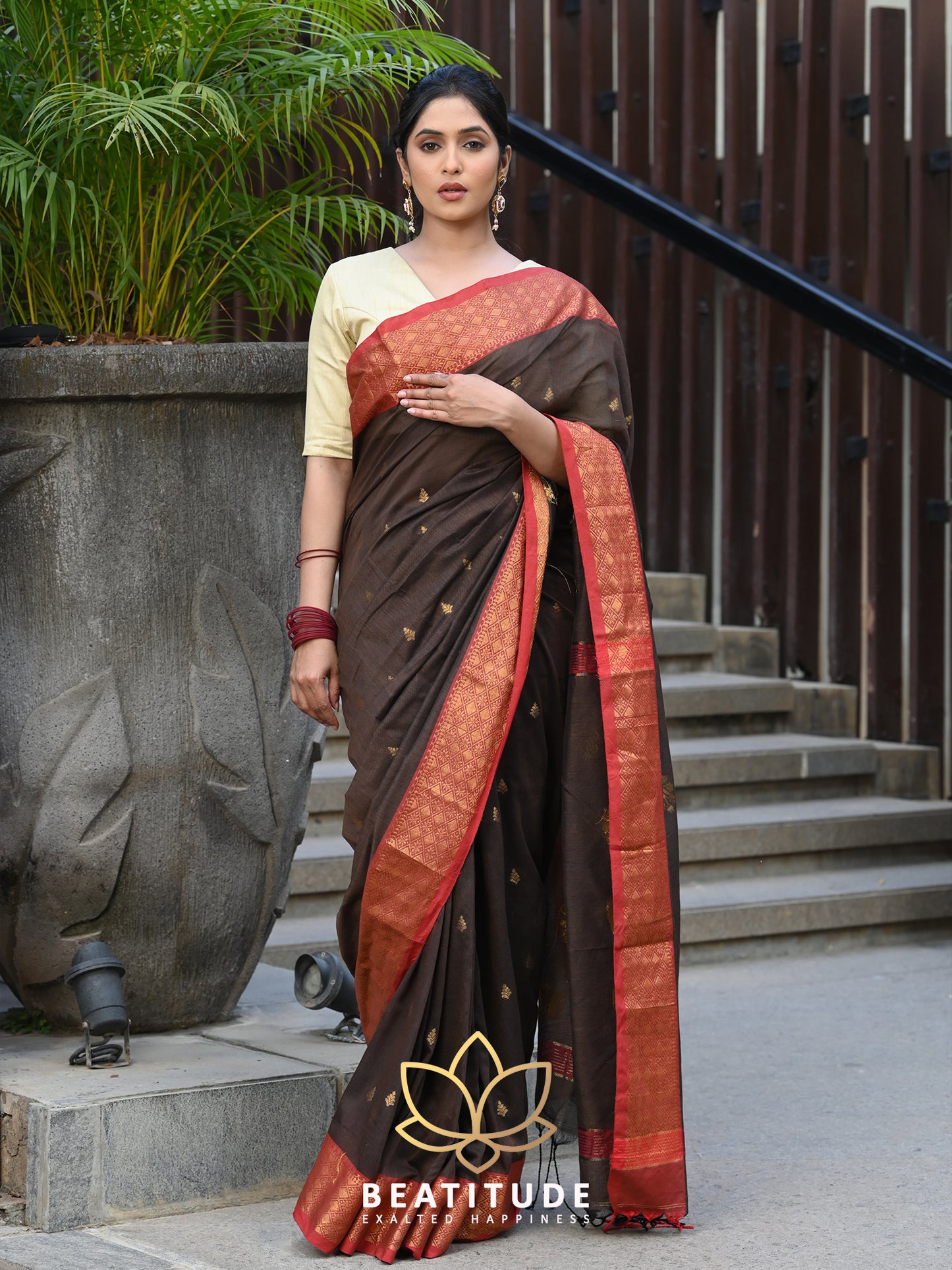 Add Rust Handwoven Tussar Silk Saree with Embroidery on Border to the cart