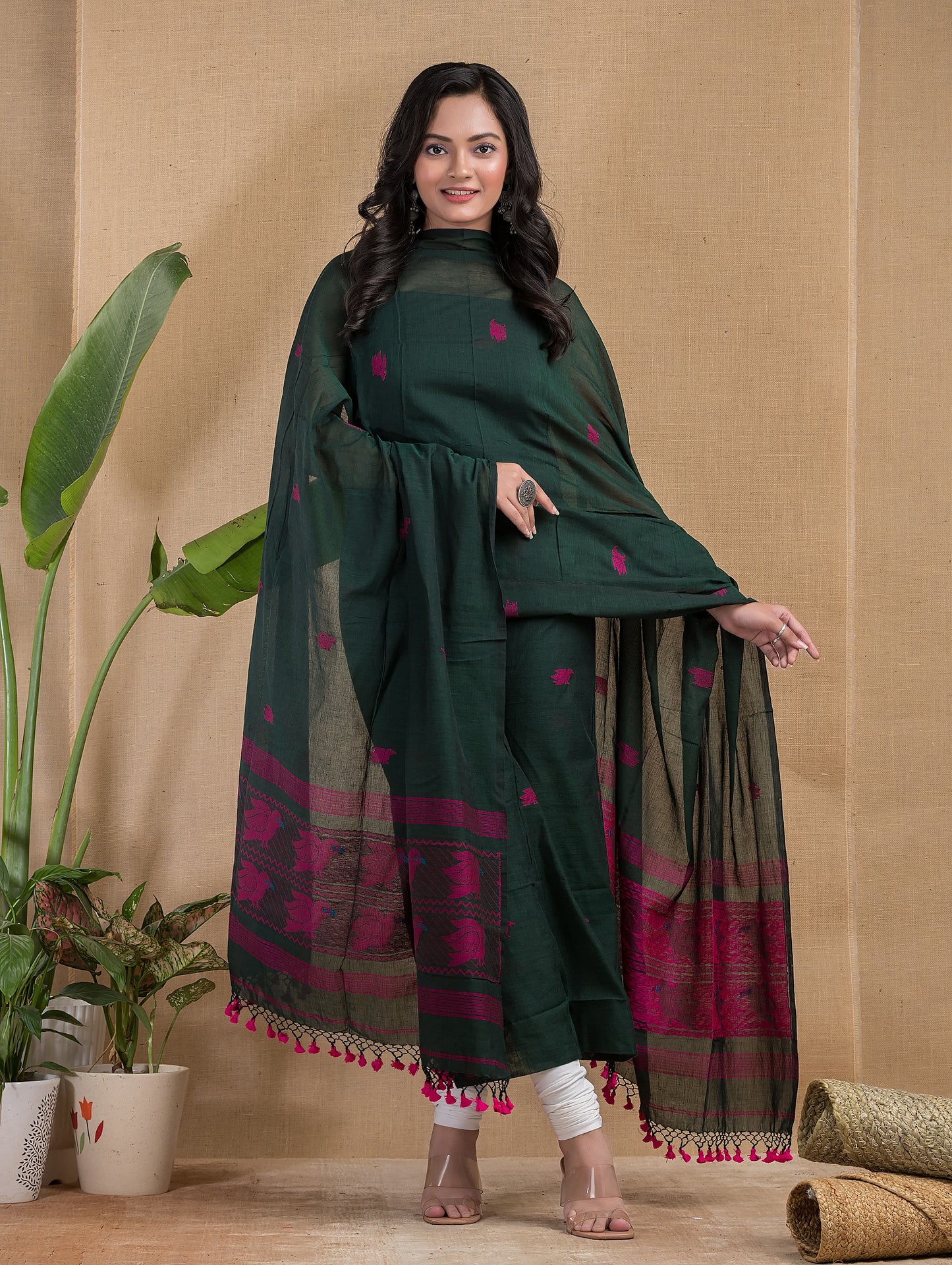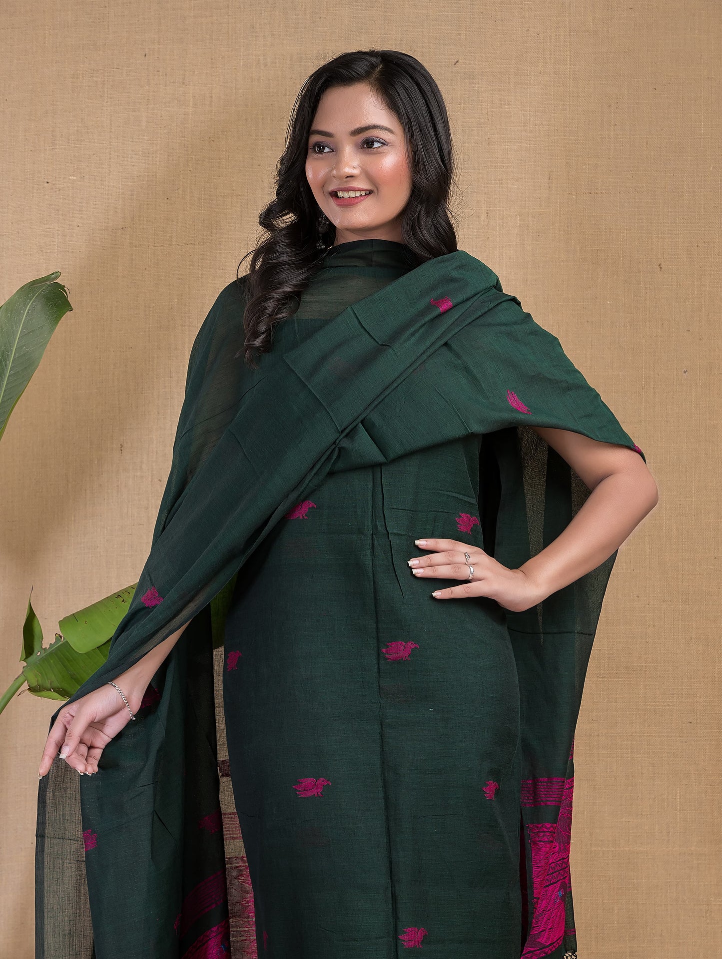 Add Green Pure Cotton Bird Jamdani Top Dupatta ( Un-Stitched ) to the cart