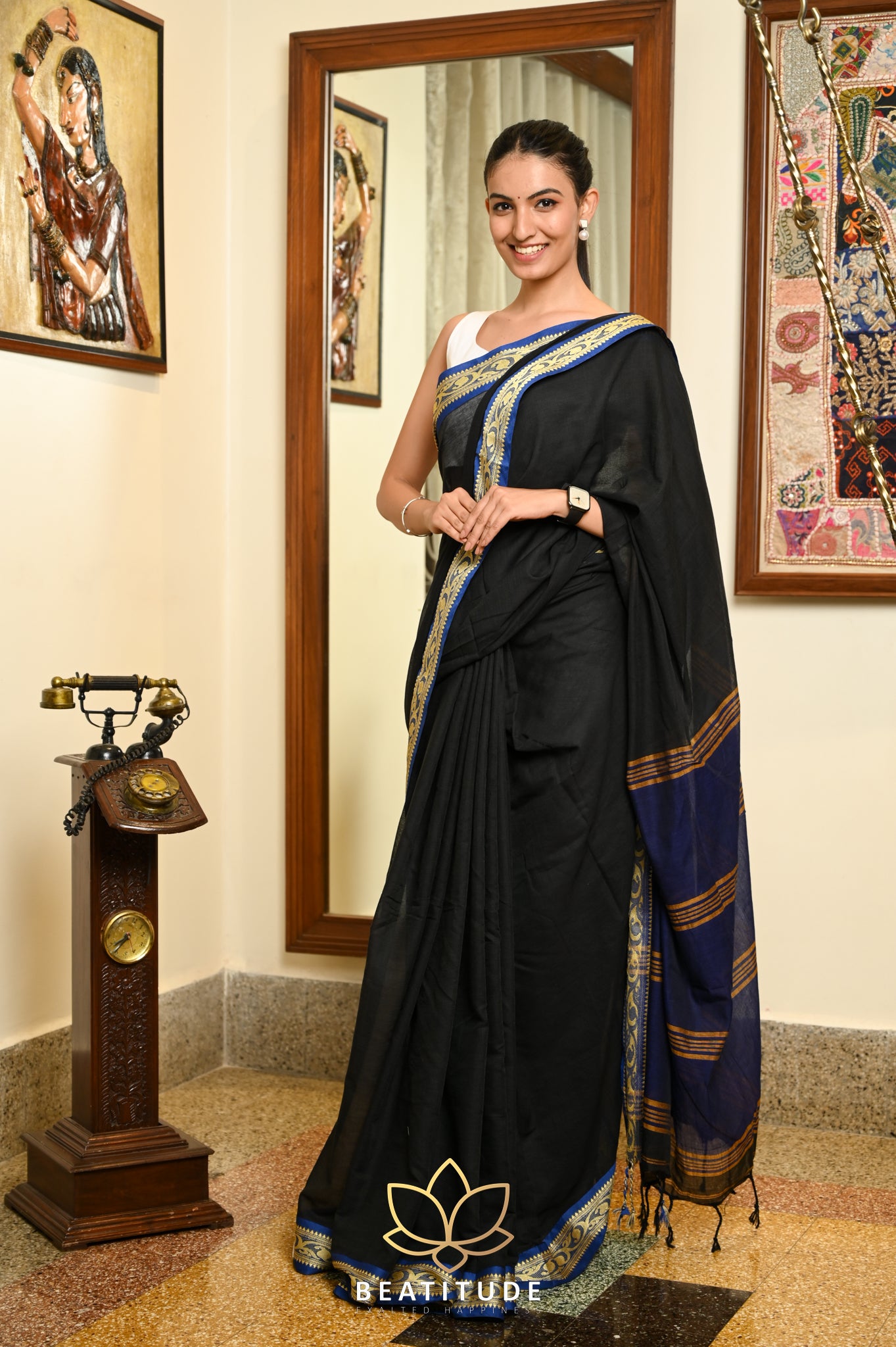 Black Jacquard Border Saree