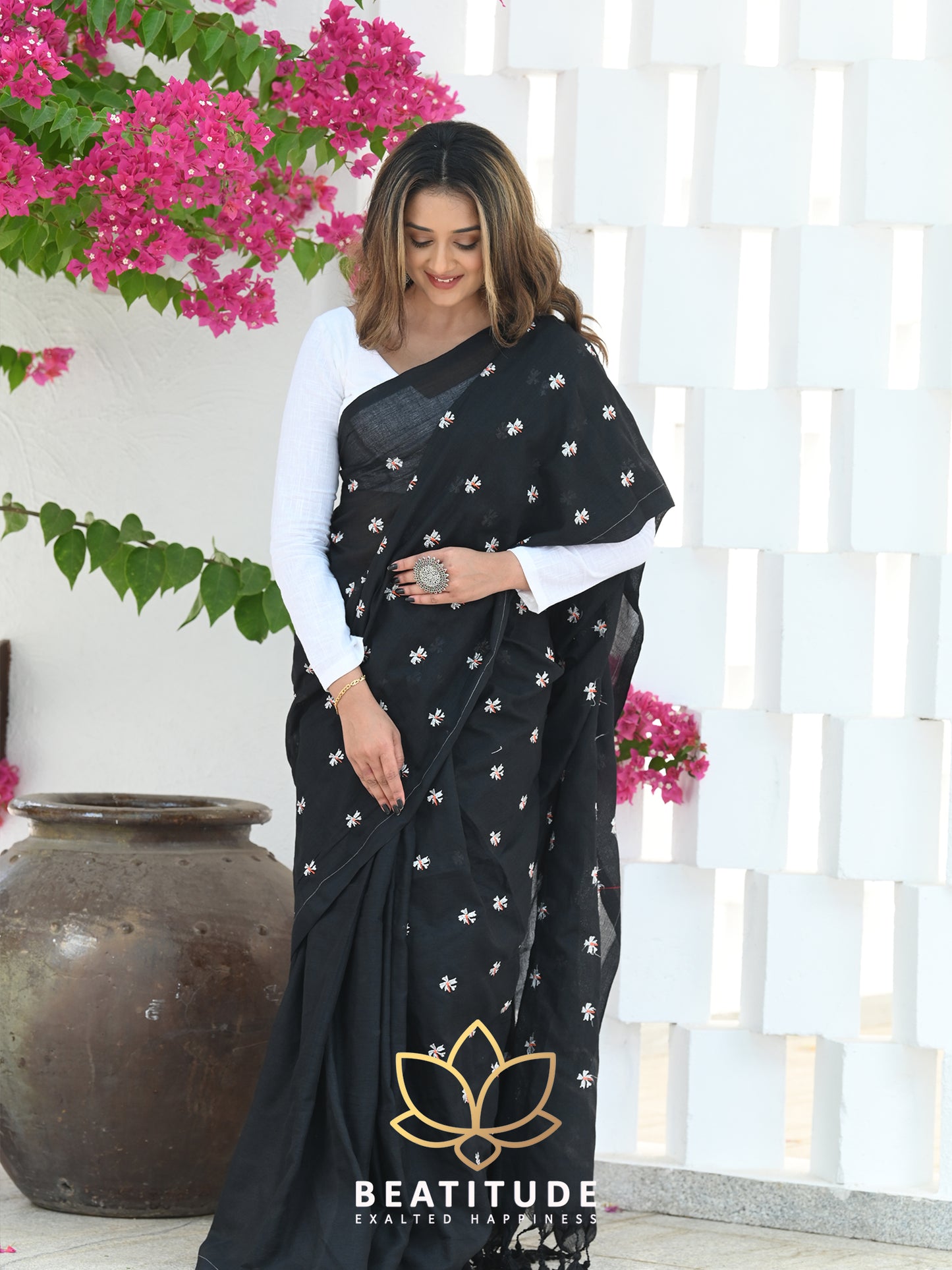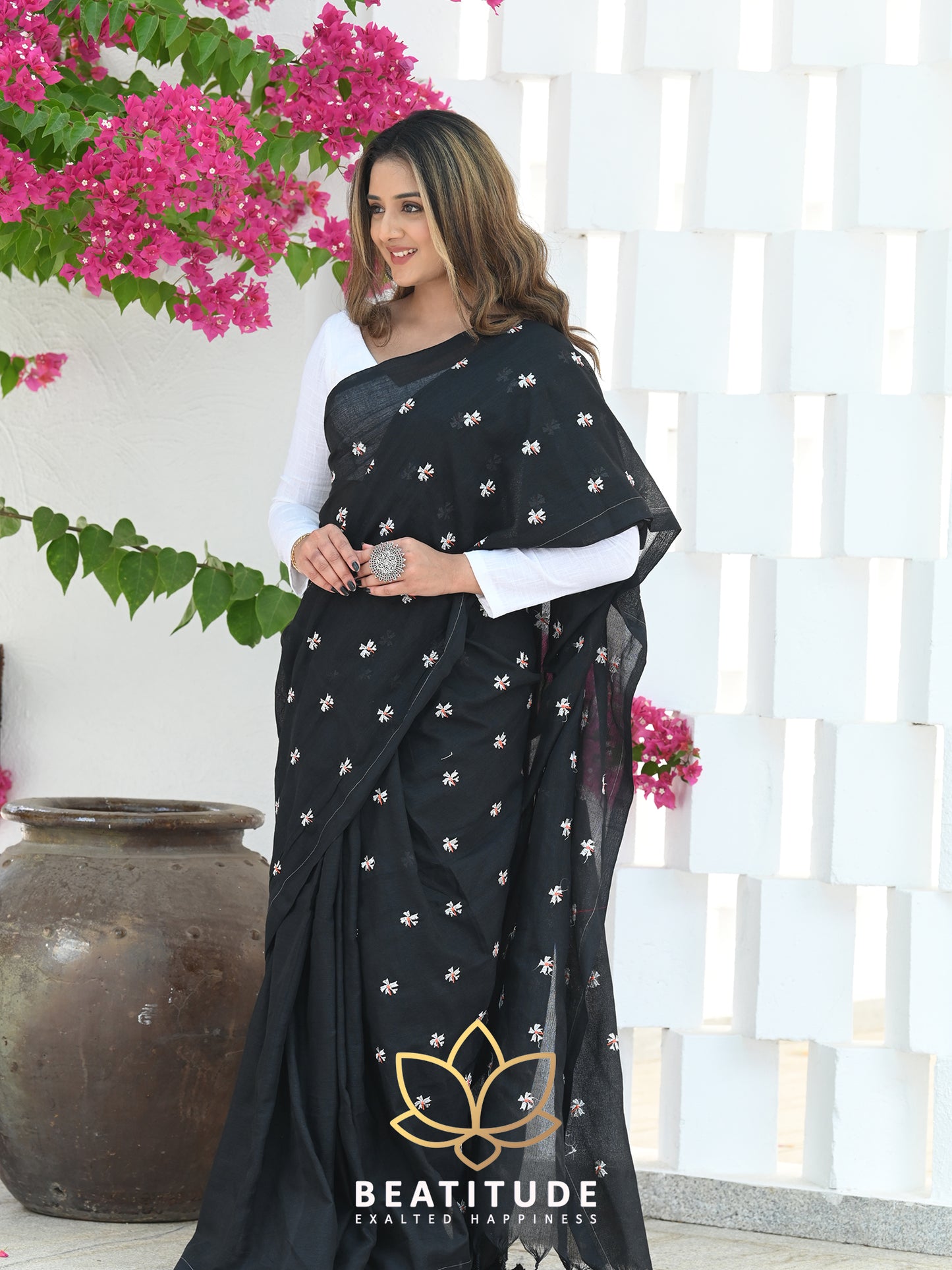 Black Khadi Floral Embroidered Saree