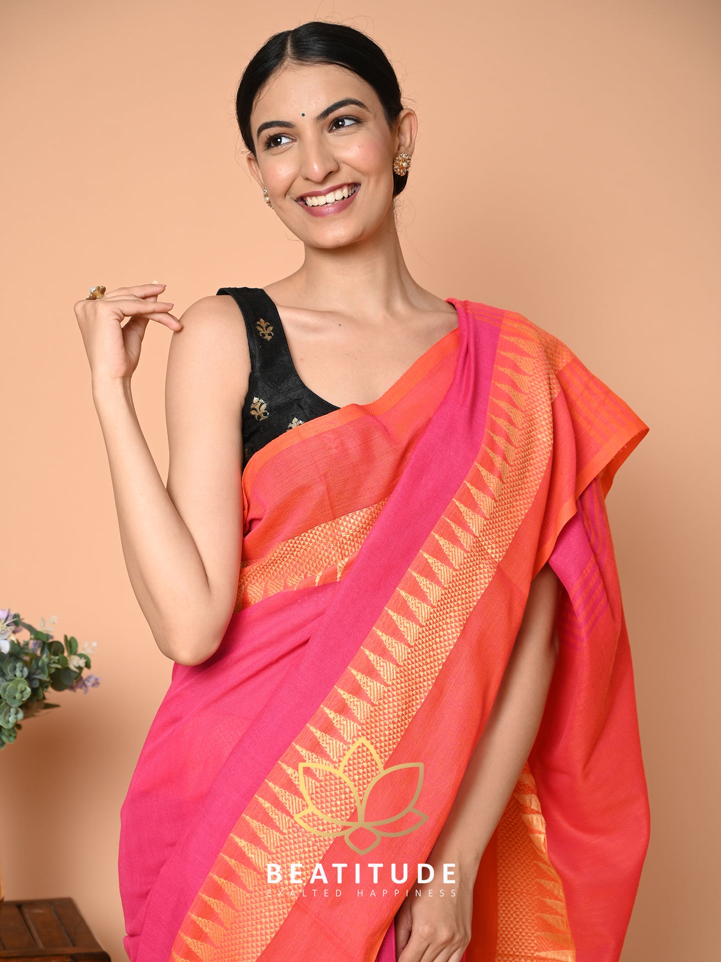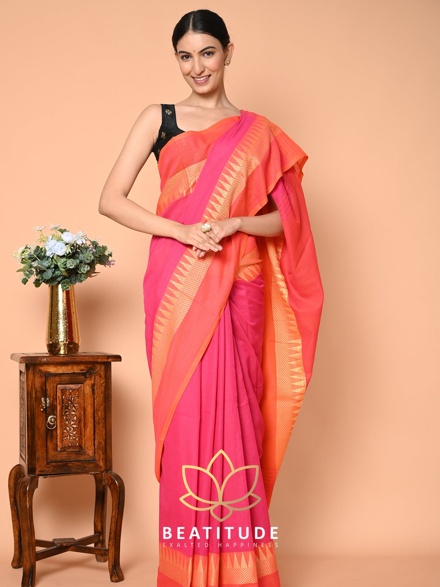 Add Blue Heart Border Motif Cotton Handloom Saree to the cart
