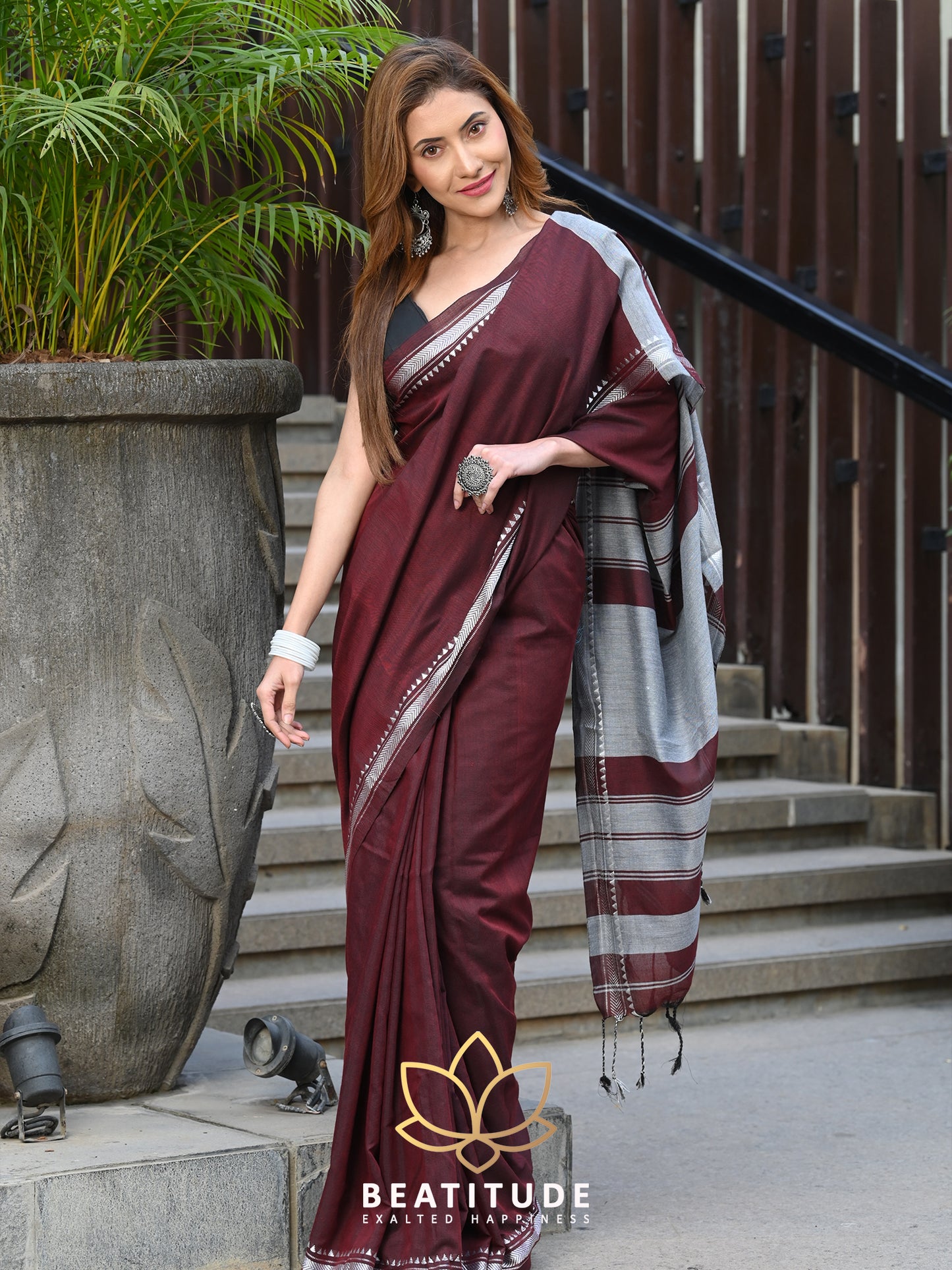 Add White Cotton Zig Zag Border Handloom Saree to the cart