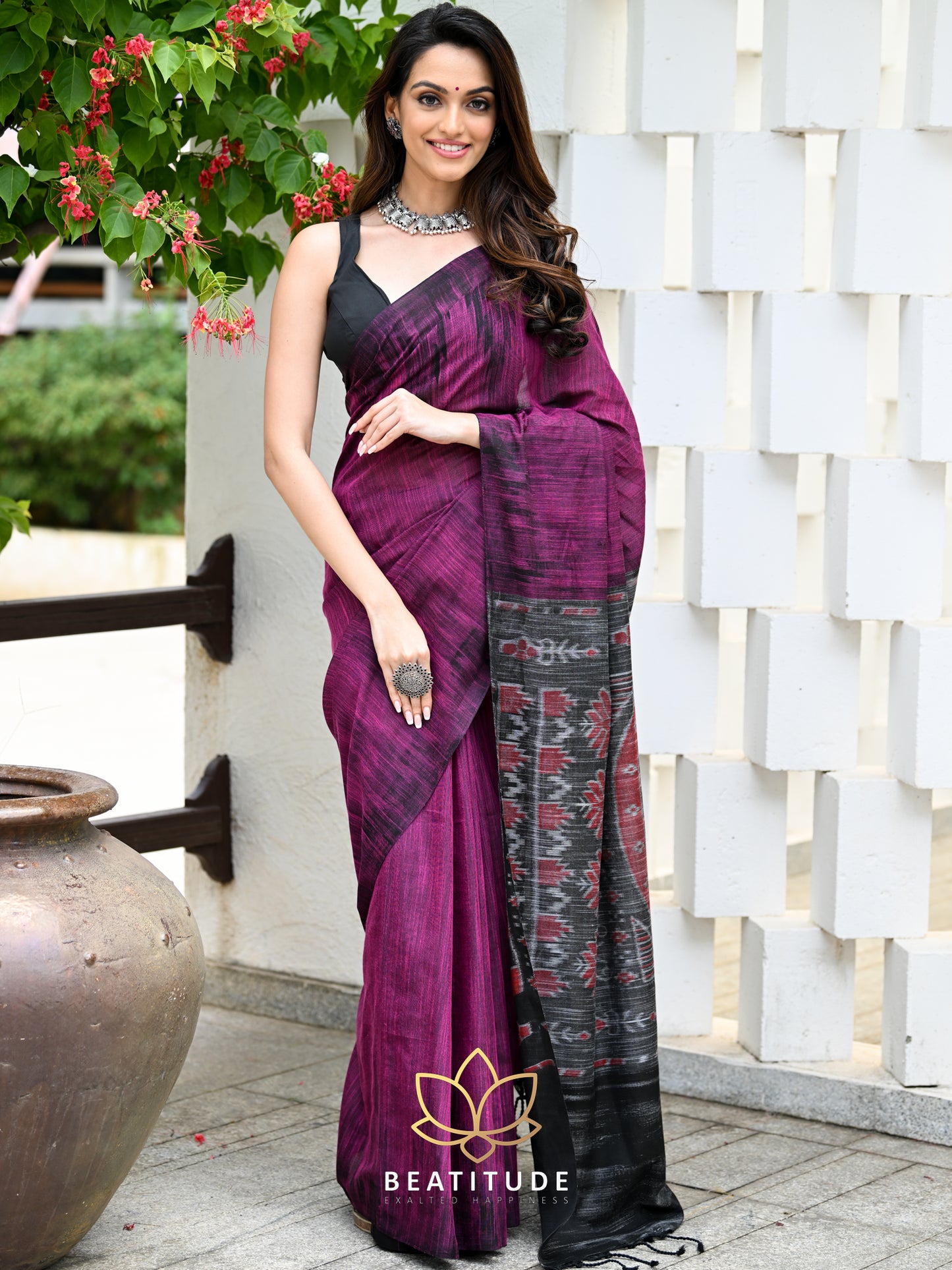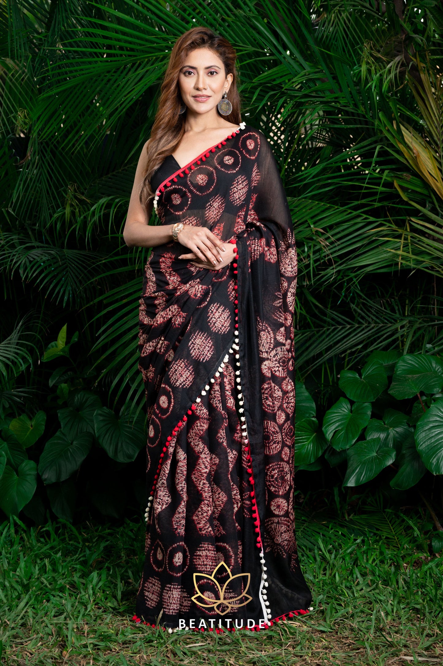 Add Black Printed Pom Pom Blended Mulmul Cotton Saree to the cart