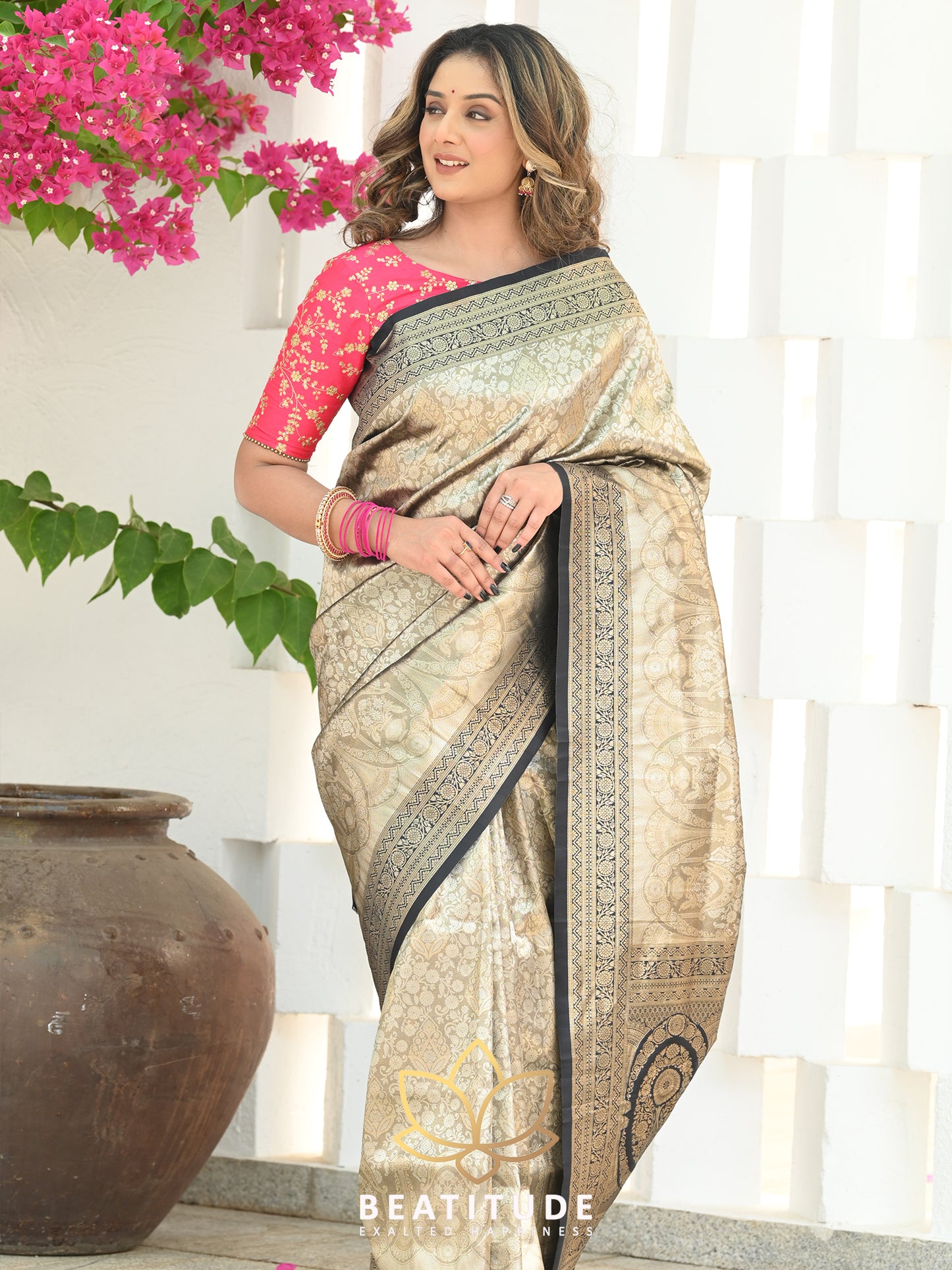 Add Beige Handwoven Tussar Embroidered Silk Saree to the cart