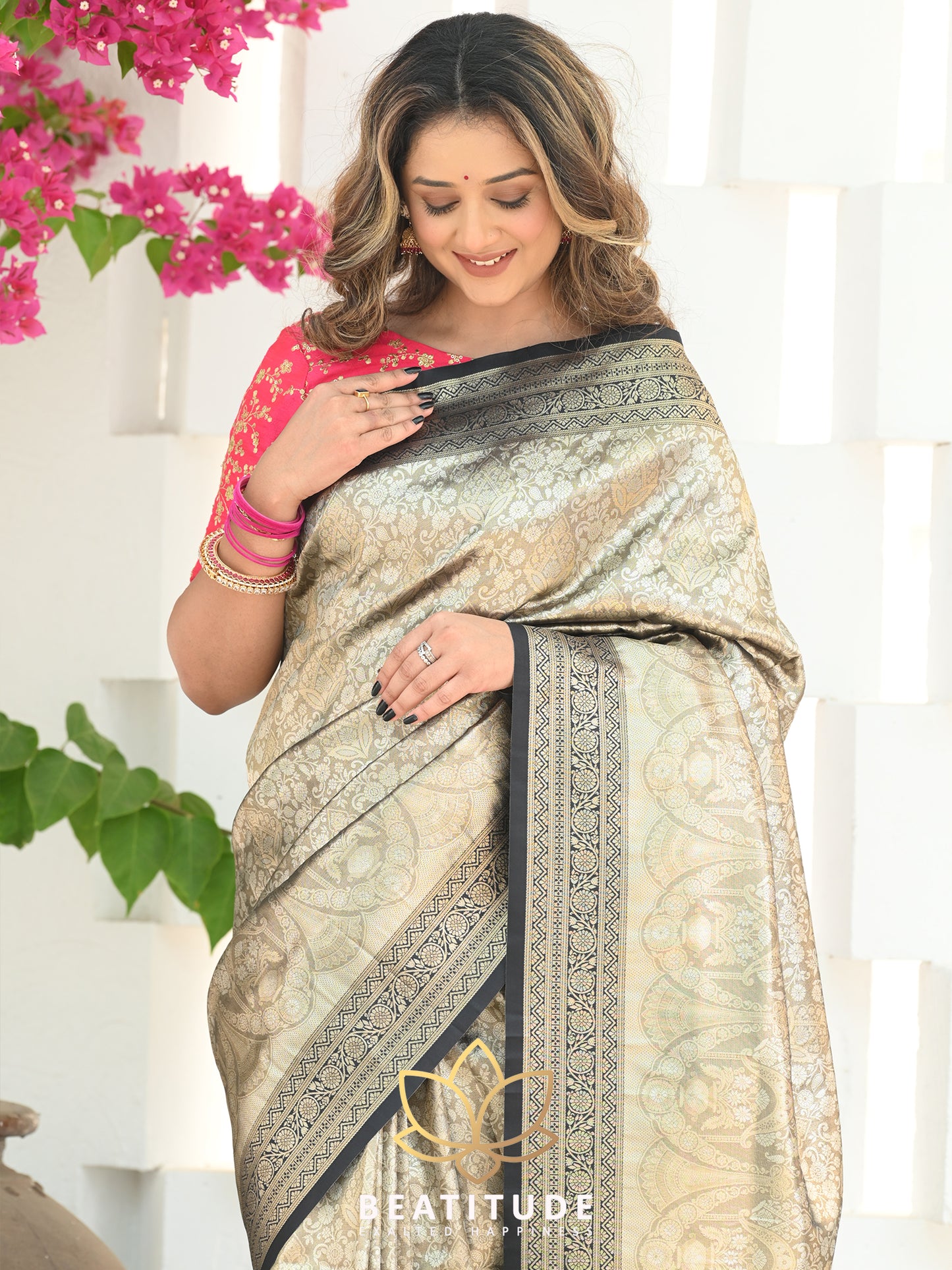 Add Grey Handwoven Tussar Embroidered Silk Saree to the cart