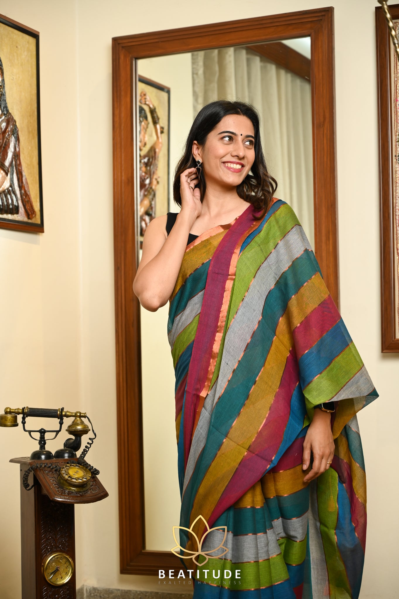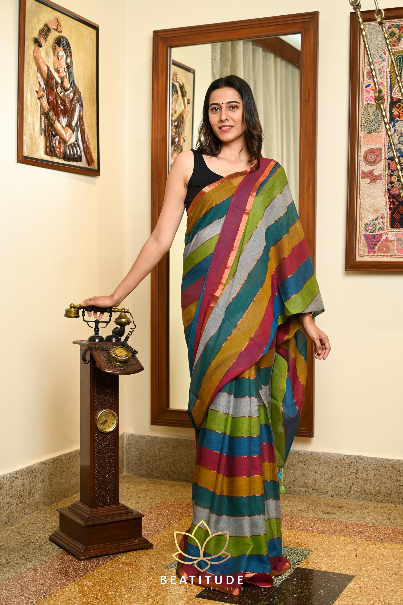 Add Multicolor Cotton Handloom Stripes Saree to the cart