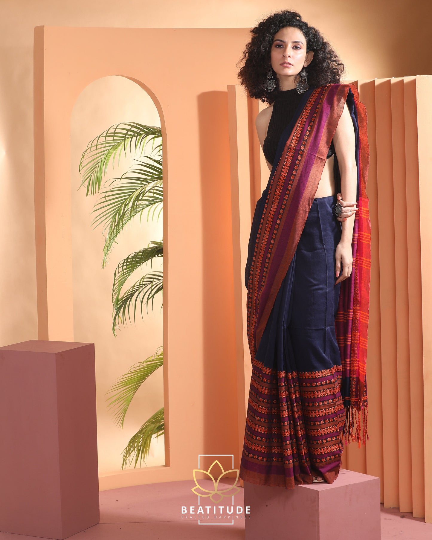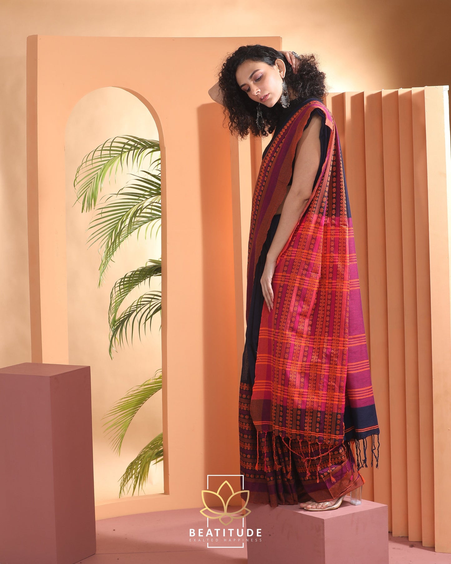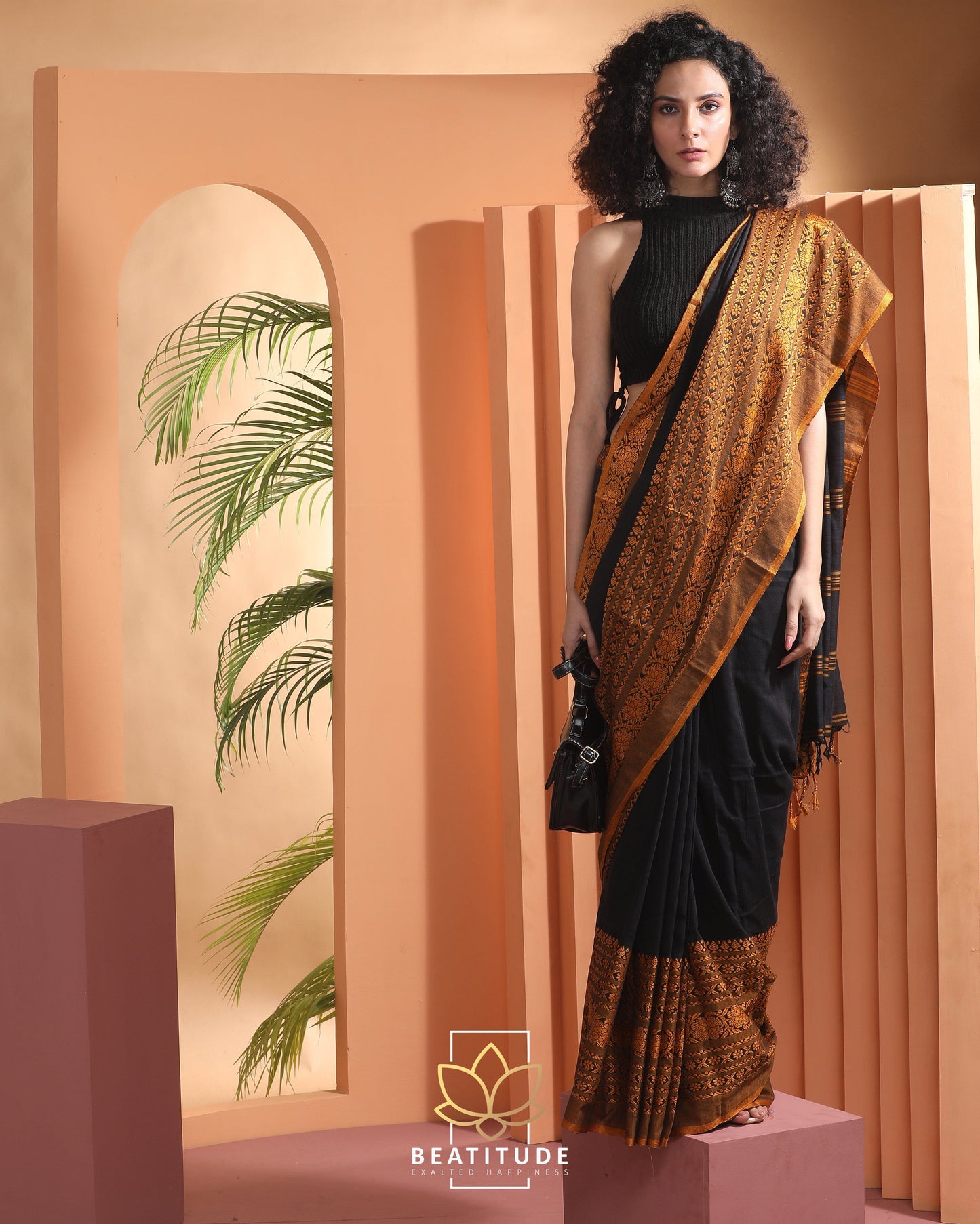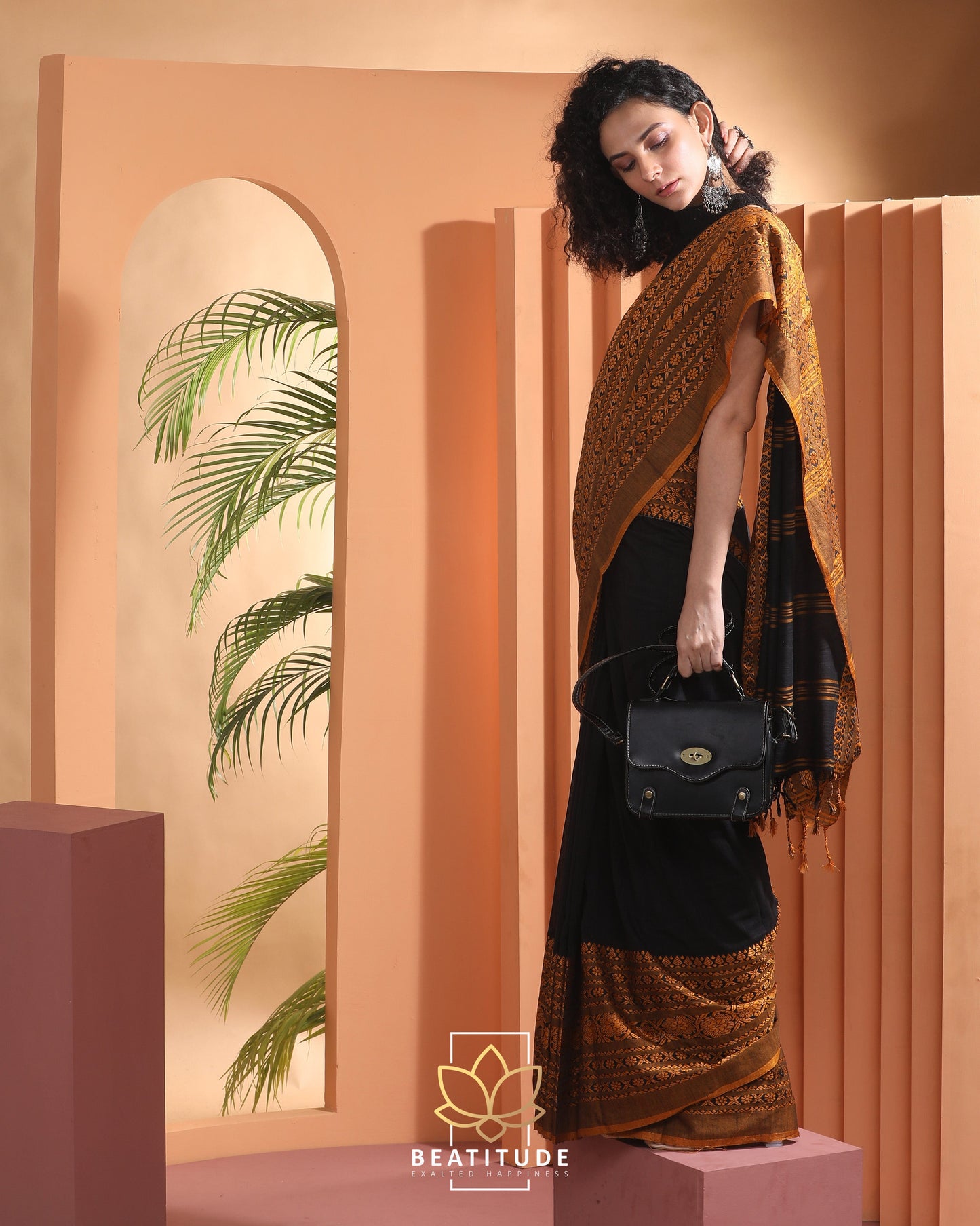 Add Black Cotton Silk ball Butta handloom saree to the cart