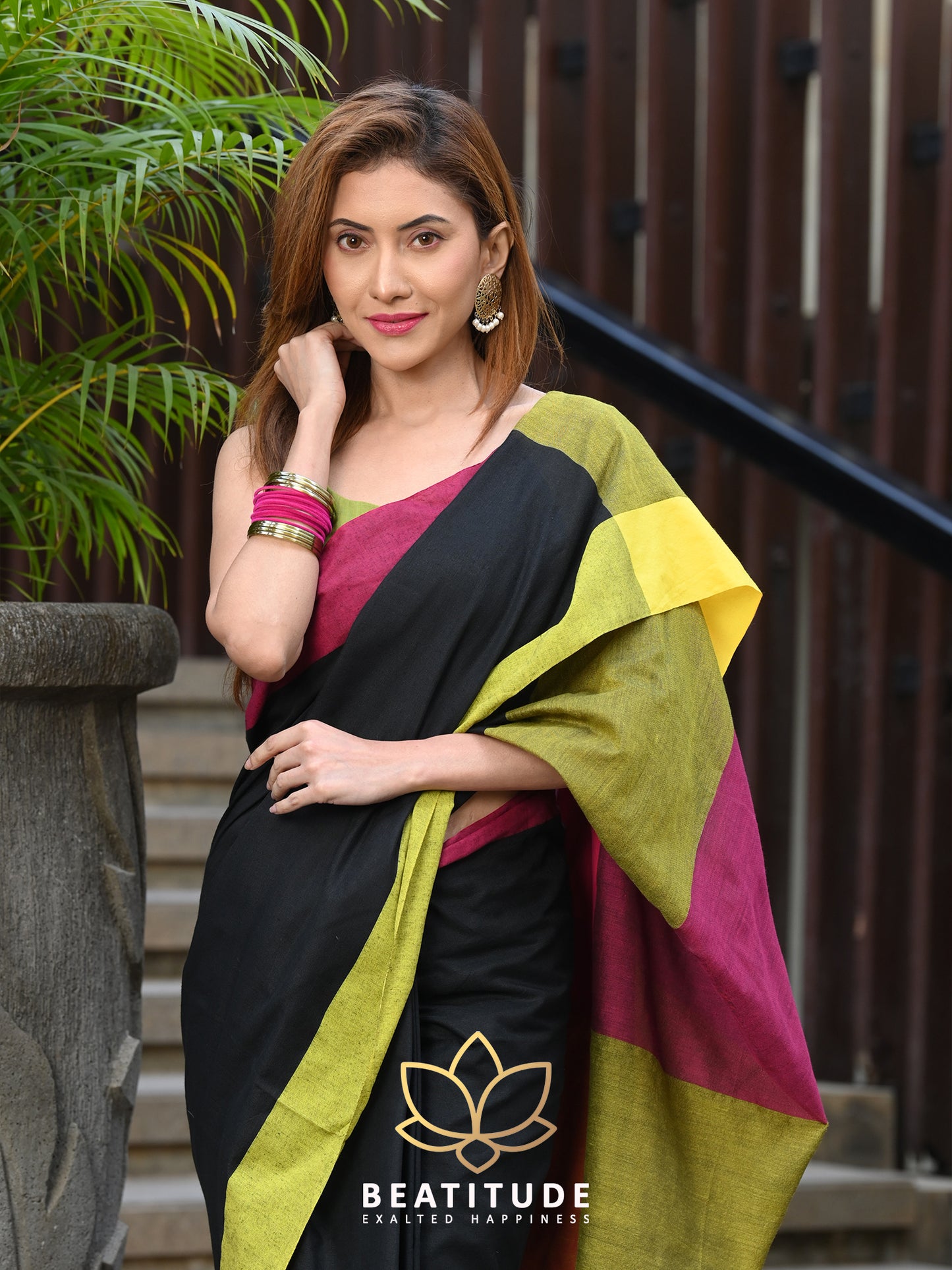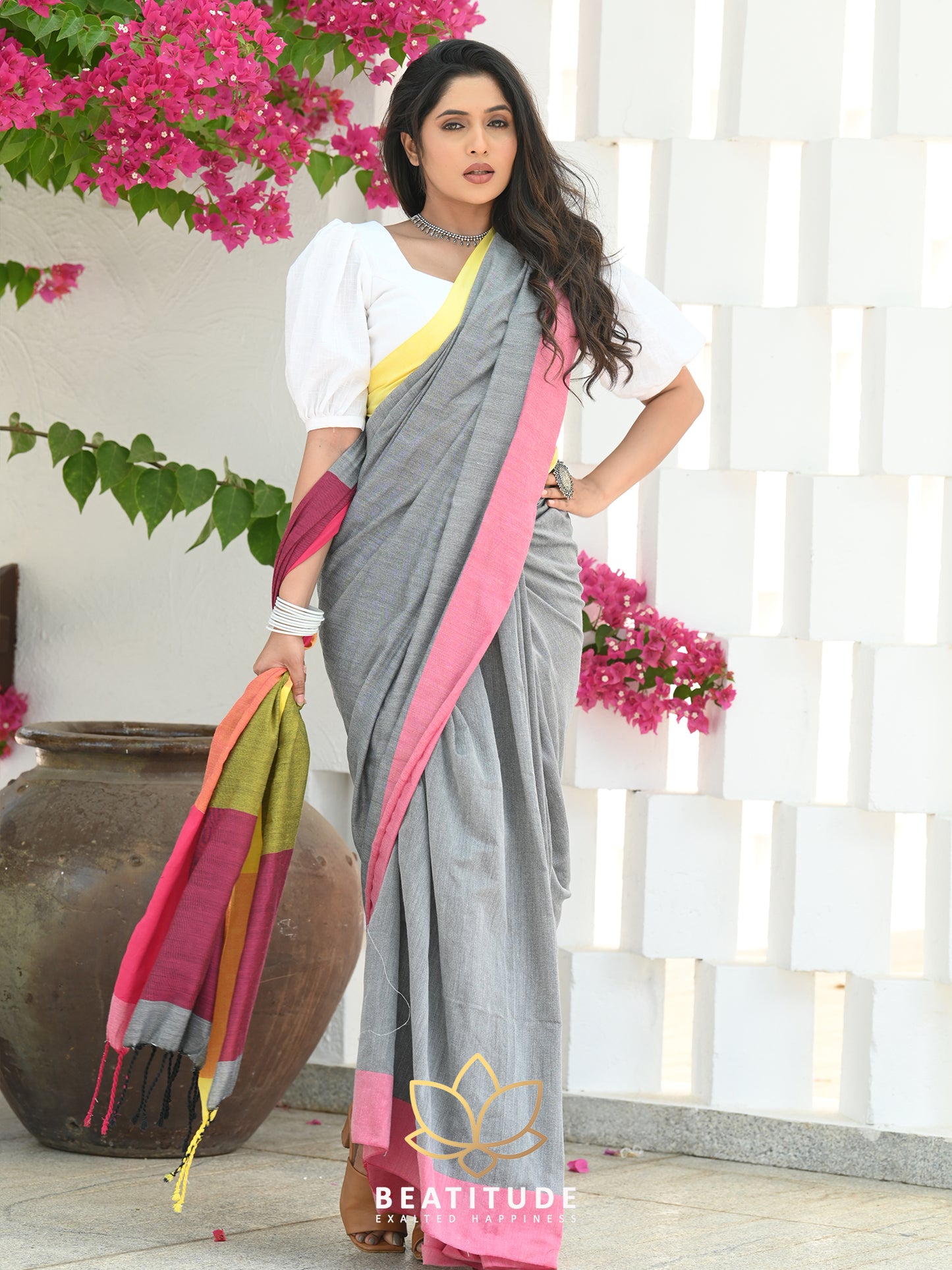 Add Pink Cotton Triangle Buta Handloom Saree to the cart