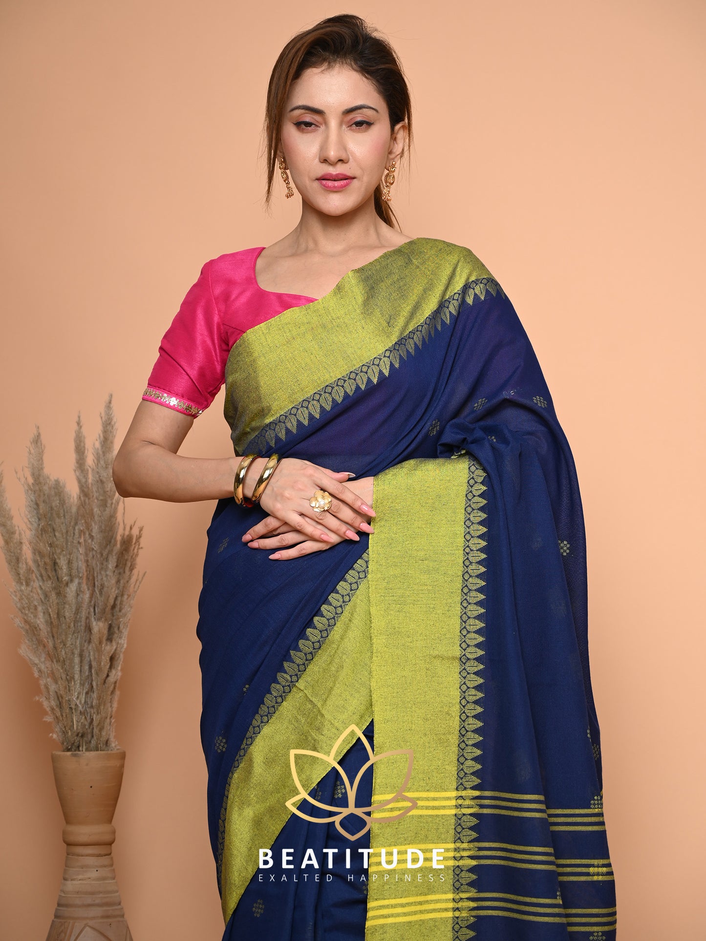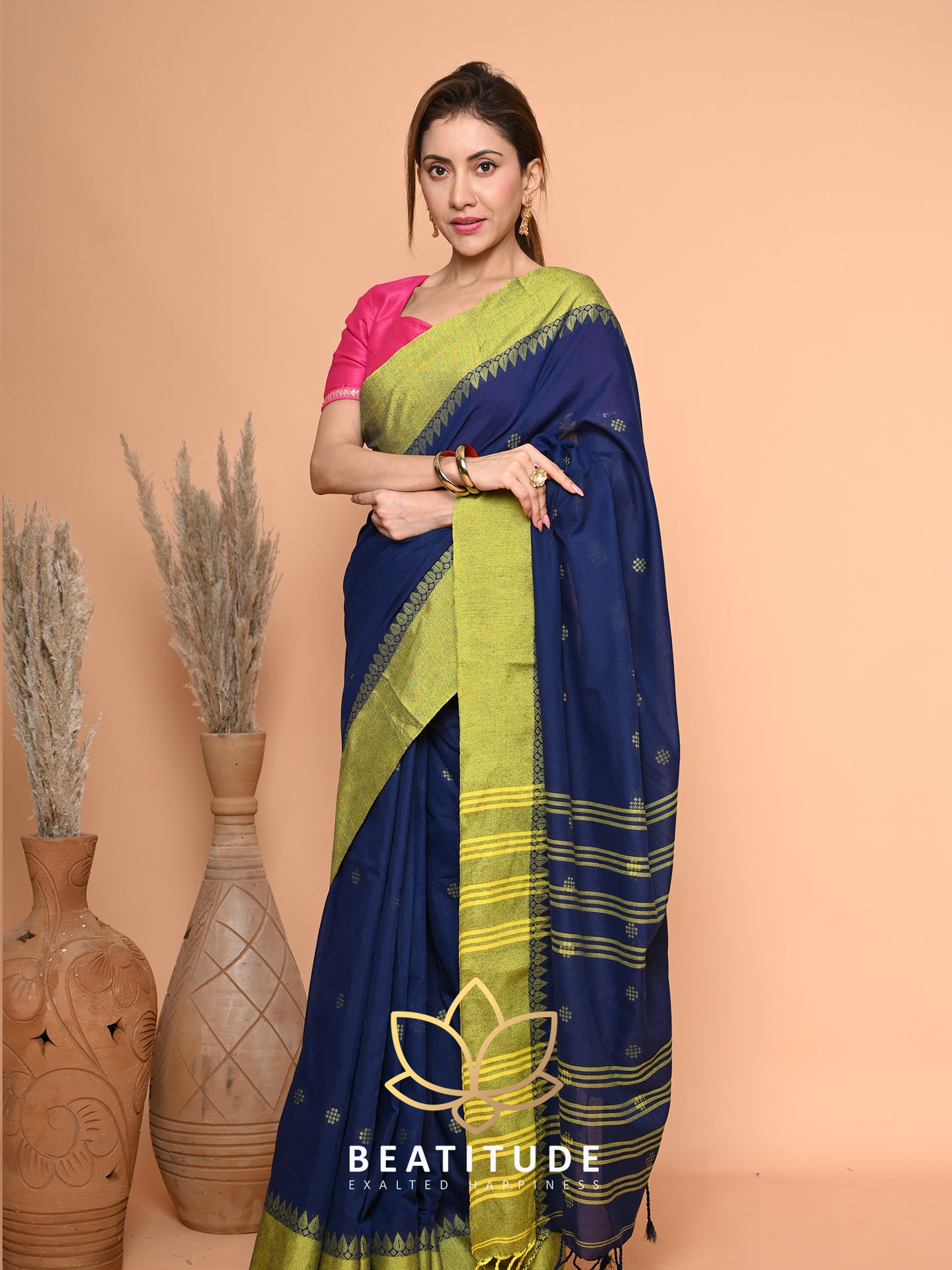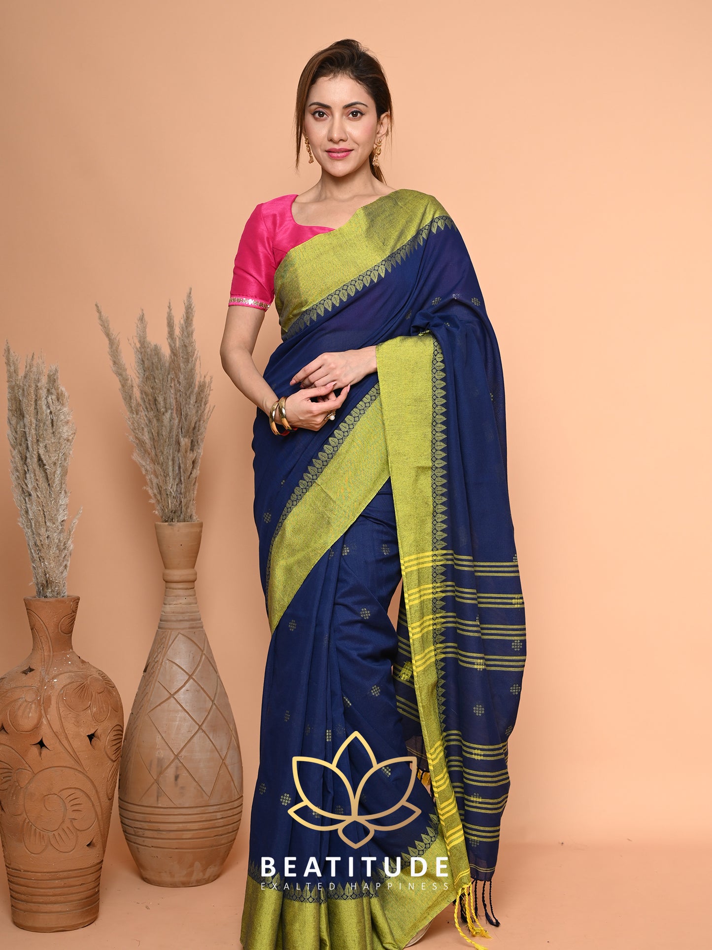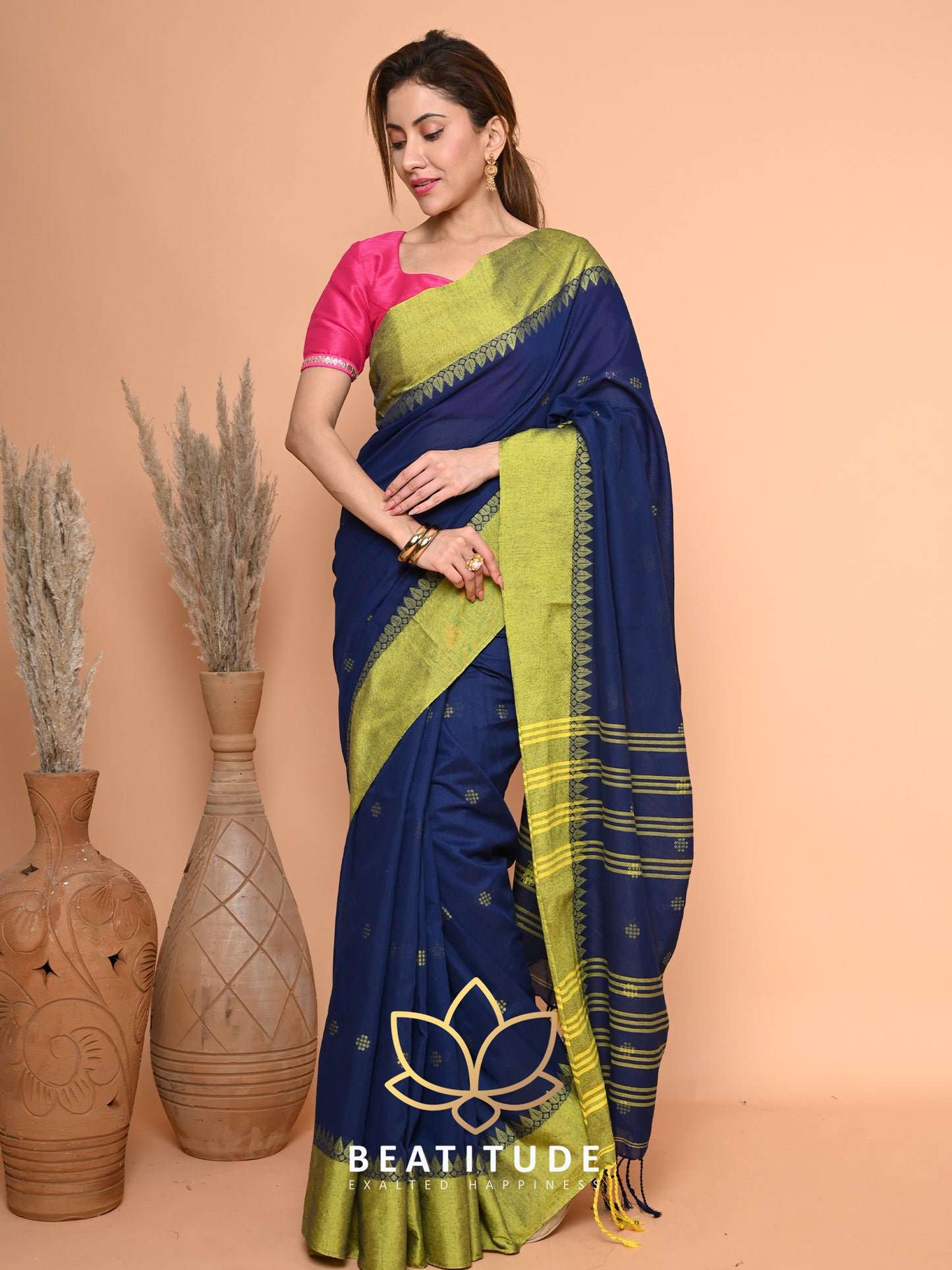 Blue Cotton Velvet Border Saree