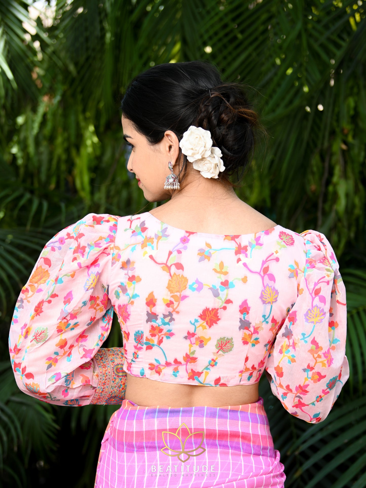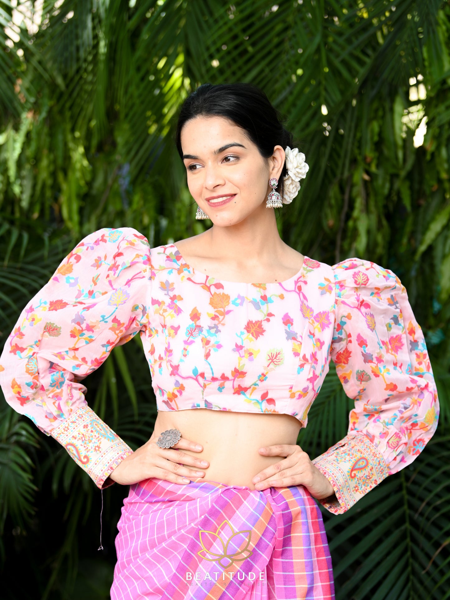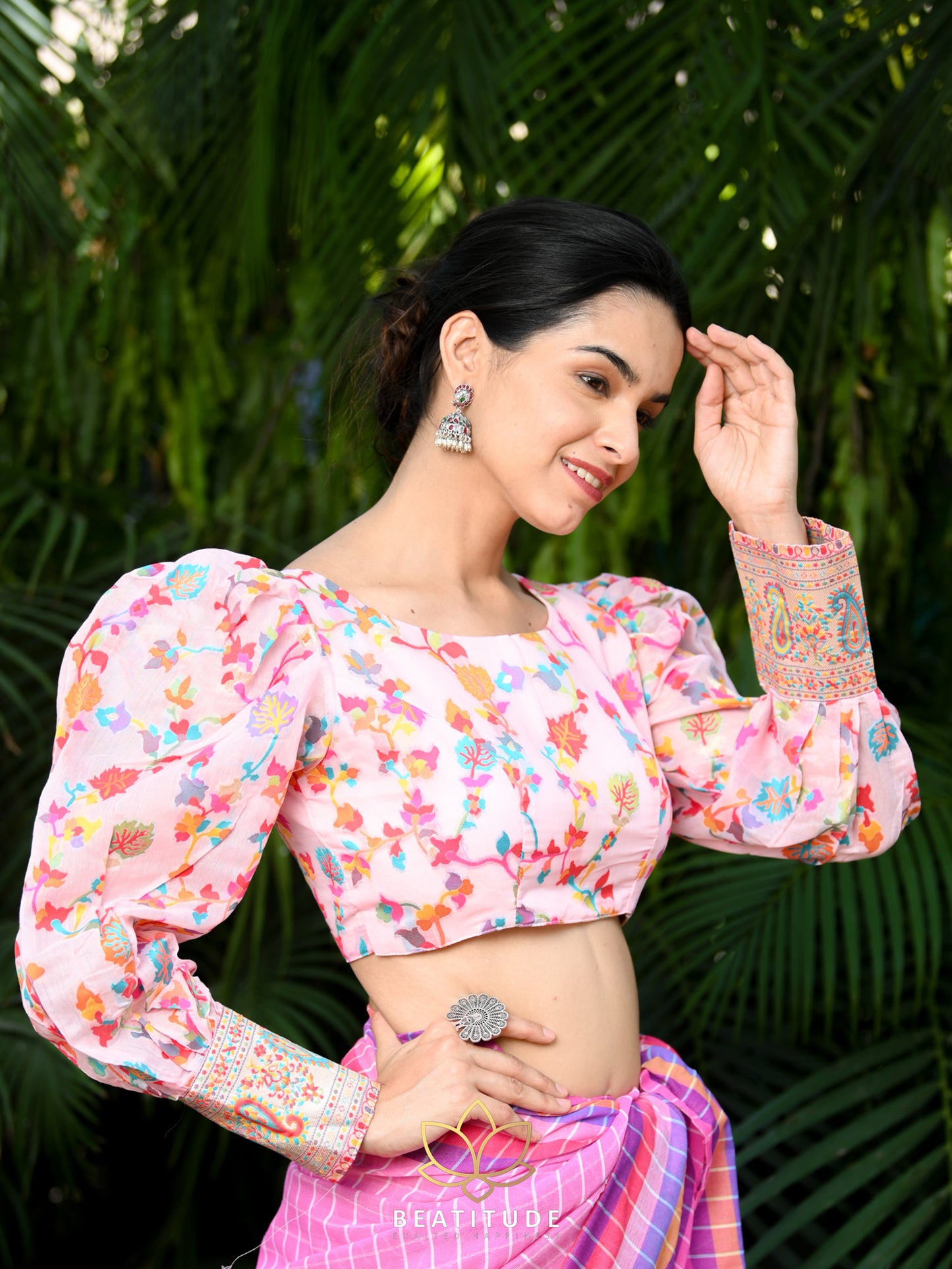 Pink Soft Modal Silk Kashmiri Weaving Blouse